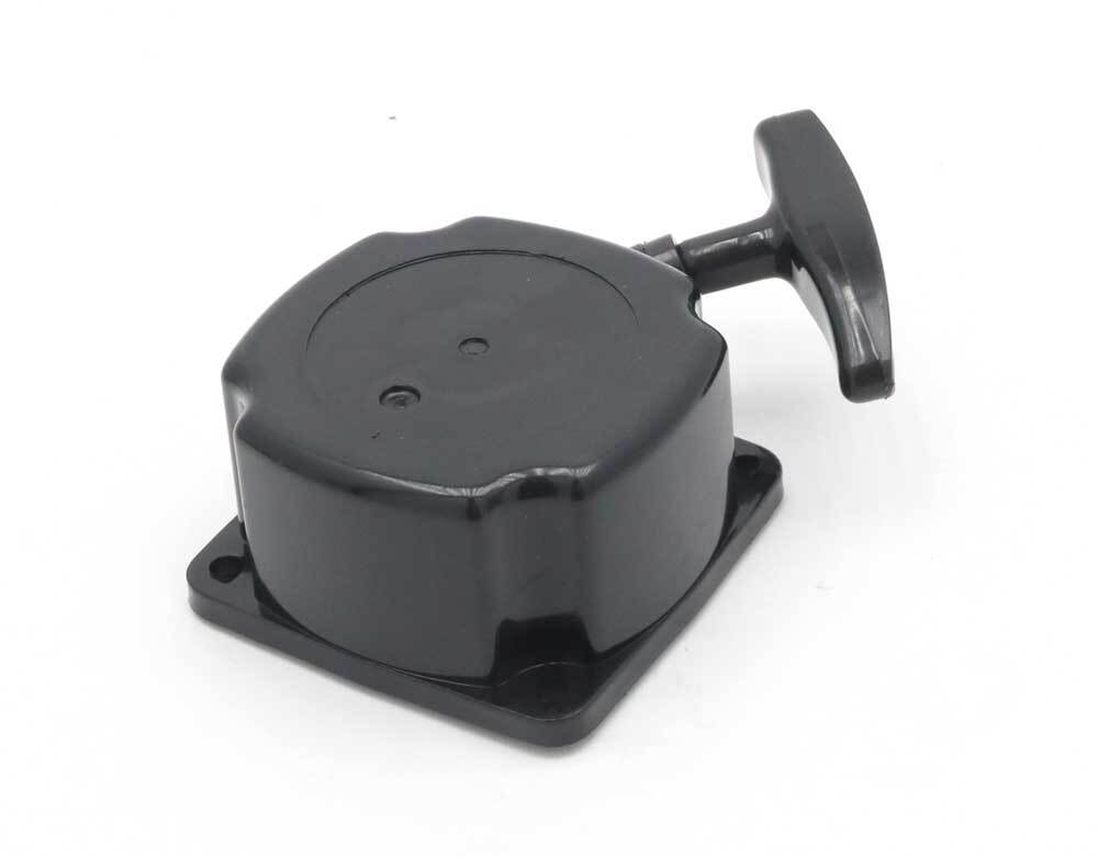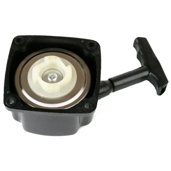 Стартер для триммера, бензокосы 33-52 см3, легкий старт. подходит для большинства бензокос производства Китай. Ручной стартер служит для запуска двигателя триммера, и в случае его поломки эксплуатация инструмента становится невозможной. Существует несколько распространённых причин отказа этого элемента. Ремонтировать стартер триммера сегодня не целесообразно. Гораздо проще и быстрее купить новый. Но для этого его нужно подобрать, заменить и в дальнейшем использовать правильно. Подбирать стартер для замены вышедшего из строя нужно по следующим признакам: Количество креплений. Расстояние между креплениями. Конфигурация корпуса. Конфигурация «начинки». Мощность триммера. Функция «лёгкий старт». Модель триммера. Чтобы стартер триммера служил максимально долго, придерживайтесь следующих простых правил: Определите максимальную амплитуду вытягивания троса, и при запуске двигателя старайтесь не вытягивать его до упора. Перед основным движением при запуске обязательно нужно ввести механизм стартера в уверенное зацепление с маховиком — для этого медленно тяните за ручку, пока не почувствуете сопротивление. Тяните ручку стартера быстро, но плавно — без рывков, резких движений и не до упора. Придерживайтесь естественного для вашей модели вектора вытягивания троса — не тяните в стороны. После основного движения никогда не бросайте ручку стартера — аккуратно верните её в исходное положение, удерживая рукой.
