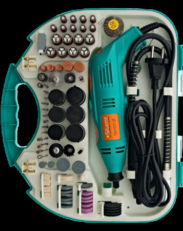 Гравер Sturm! GM2315F - компактная и универсальная модель в комплекте с исчерпывающим количеством насадок подходит для широкого применения.Инструмент с легкостью справляется с металлом, камнем, стеклом, керамикой, деревом, пластиком и другими материалами. Ему доступна шлифовка, резка, фрезеровка, гравировка, сверление, полирование и зачистка поверхностей.В комплекте с моделью поставляется исчерпывающий диапазон из 210 аксессуаров, которые эргономично уложены в удобный пластиковый кейс вместе с основным инструментом. Богатая комплектация насадок включает в себя сверла, режущие насадки с головкой разнообразной формы, точильные аксессуары с наконечниками из абразивных материалов различной зернистости, цилиндрической, конусной, шарообразной или дисковой формы, щётки (крацовки), полировальные круги с матерчатым или войлочным материалом, небольшие отрезные диски и т. д.