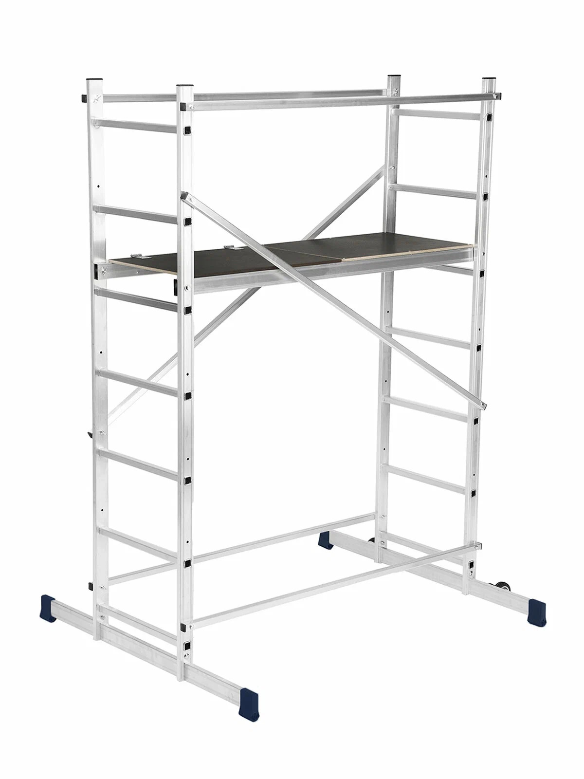 Вышка-тура 97971 используется для проведения строительных, ремонтных, отделочных и монтажных работ на высоте до 3,2 м. Грузоподъемность конструкции 150 кг — на площадке мастер может расположиться сам и разместить необходимые инструменты и материалы. Вышка быстро собирается и устанавливается, а благодаря колесам ее легко можно переместить в нужное место.