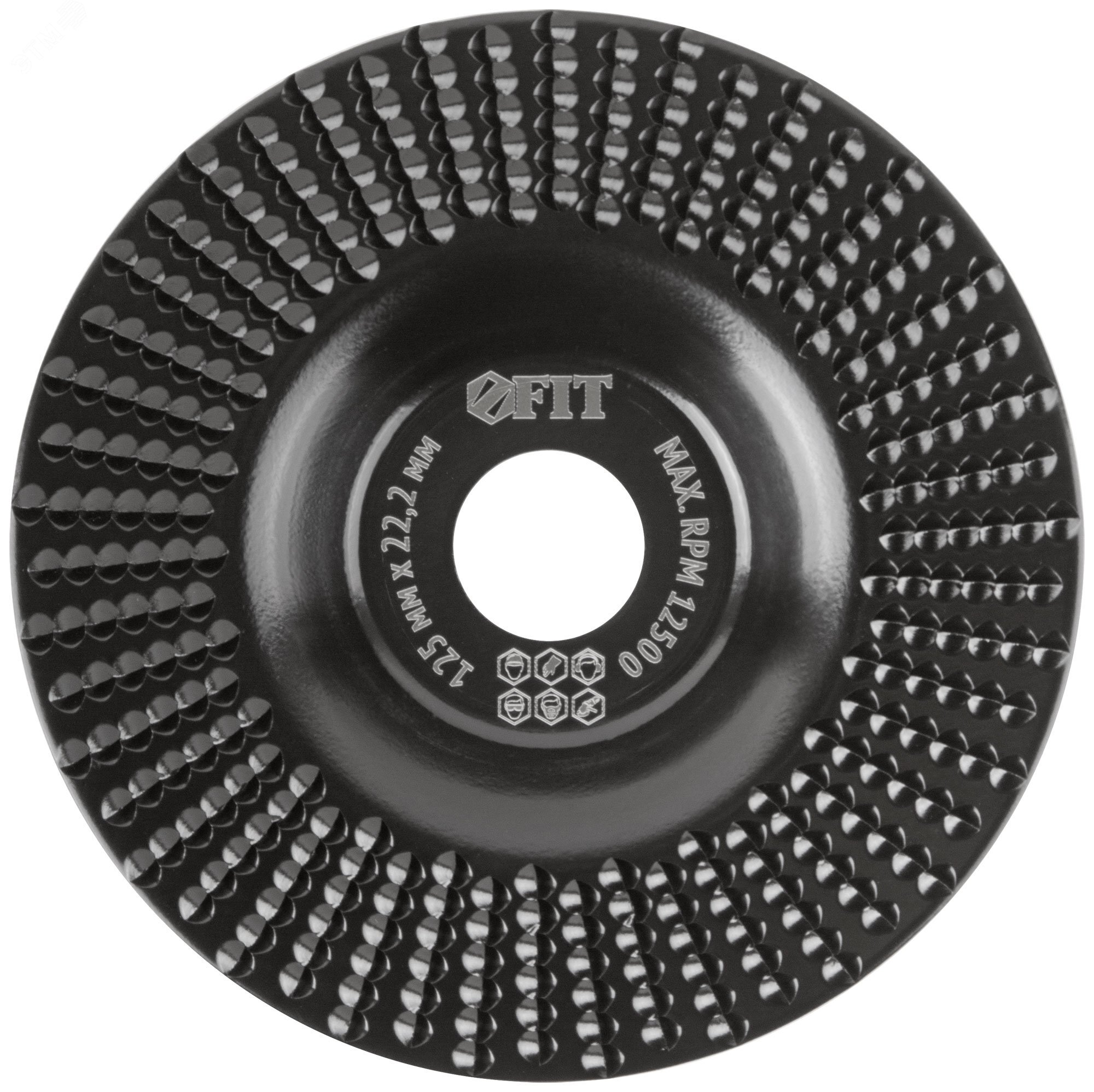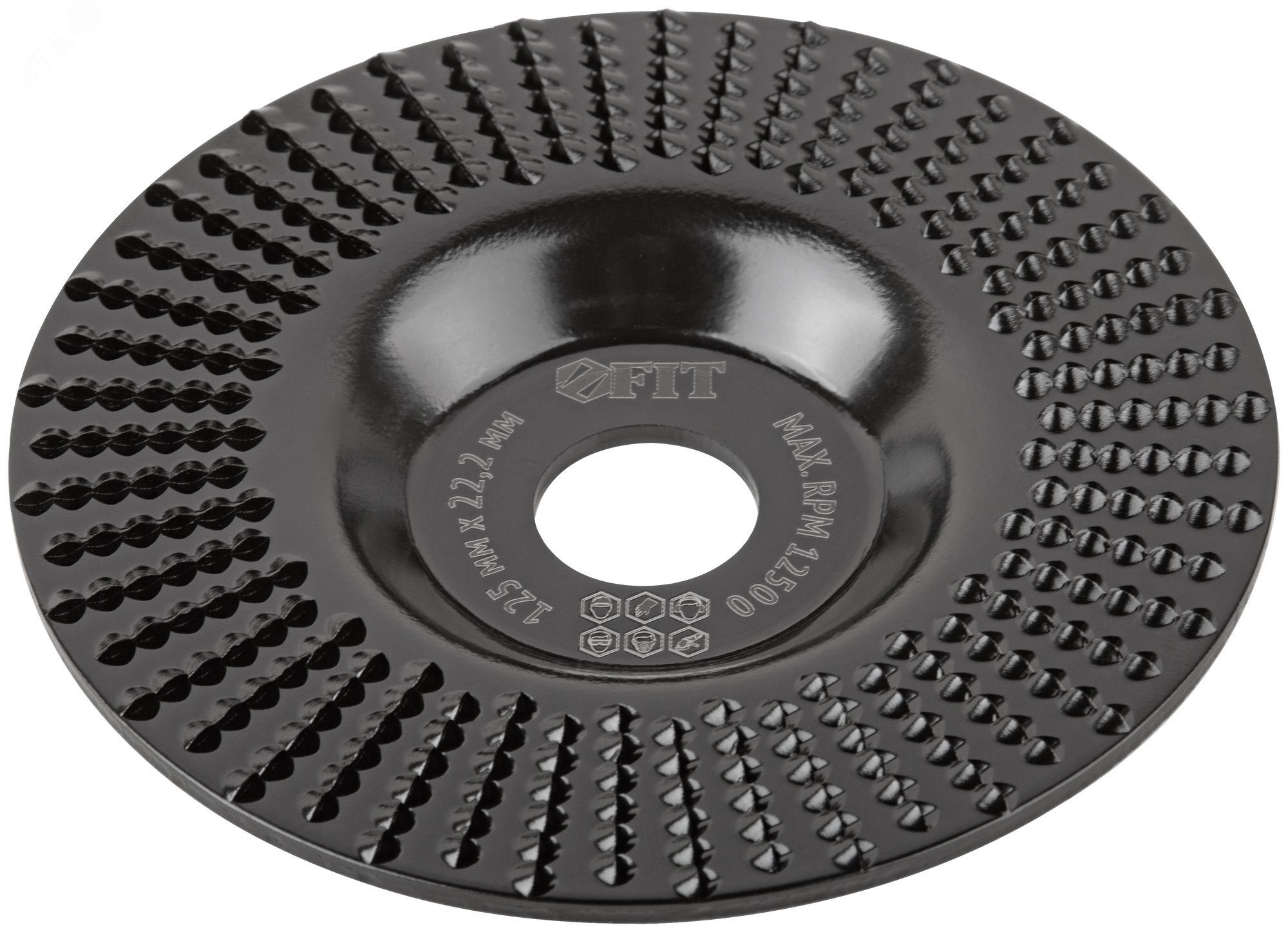Диск плоский. Насечка рашпильного типа. Для углошлифовальных машин с регулировкой оборотов. Для придания формы, фигурной обработки, снятия фасок и предварительного выравнивания древесины, фанеры, ДСП, ДВП, ламината, гипсокартона и пластика, удаления коры и мелких сучков с древесины. Материал: инструментальная сталь.