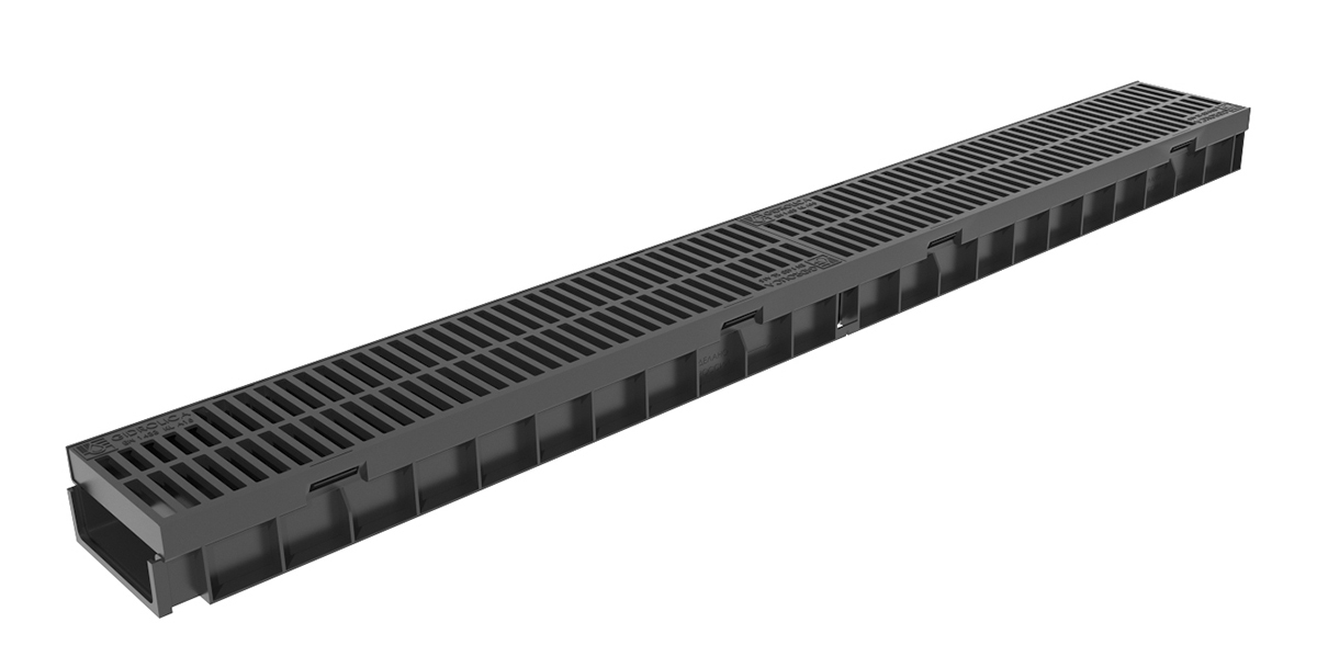 Лоток пластиковый 1000х114х55 мм с решеткой пластиковой ячеистой, предназначен для сооружения дренажных систем и систем поверхностного водоотвода. Серия Gidrolica Light, класс нагрузки В125 (до 12,5 т). Срок службы не менее 50 лет.