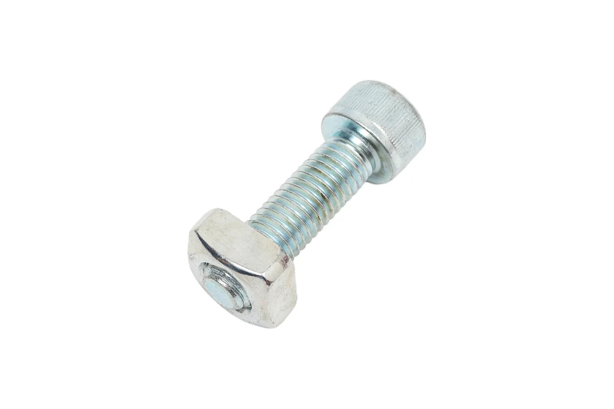 Крепеж универсальный для сборки лотка водотводного серии Gidrolica Pro состоит из болта и гайки и предназначен для крепления решетки к лотку.