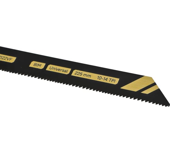 Предназначено для распила древесины с гвоздями и тонкого листового металла с помощью сабельной пилы. Co8% - Зубья полотна изготовлены из быстрорежущей стали с содержанием 8% кобальта, что гарантирует стойкость к перегреву при длительной эксплуатации. FlexiPower - Полотно обладает гибкостью и одновременно прочностью, что без труда позволяет сделать рез заподлицо. AUTO - Автоматическая заточка и шлифовка на высокоточном оборудовании. Подходит для обработки цветного металла 3-10 мм, труб из цветных металлов max D 100 мм, древесины с гвоздями 15-175 мм.