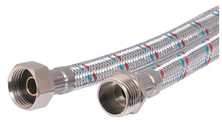 Гибкая подводка VALFEX предназначена для присоединения к трубопроводам приборов водоснабжения, отопительного, сантехнического оборудования, бытовой техники, использующей воду. Подводки гибкие для воды VALFEX рассчитаны на эксплуатацию при рабочем давлении 8 бар (максимальное давление – 10 бар) и температуре от 1 до 100 °C. Накидная гайка, пресс-гильзы и оплетка подводок изготовлены из нержавеющей стали, ниппель – из качественной сантехнической латуни, шланг – из этиленпропиленового каучука EPDM. Способ соединения Гайка-Штуцер, 1/2 дюйма