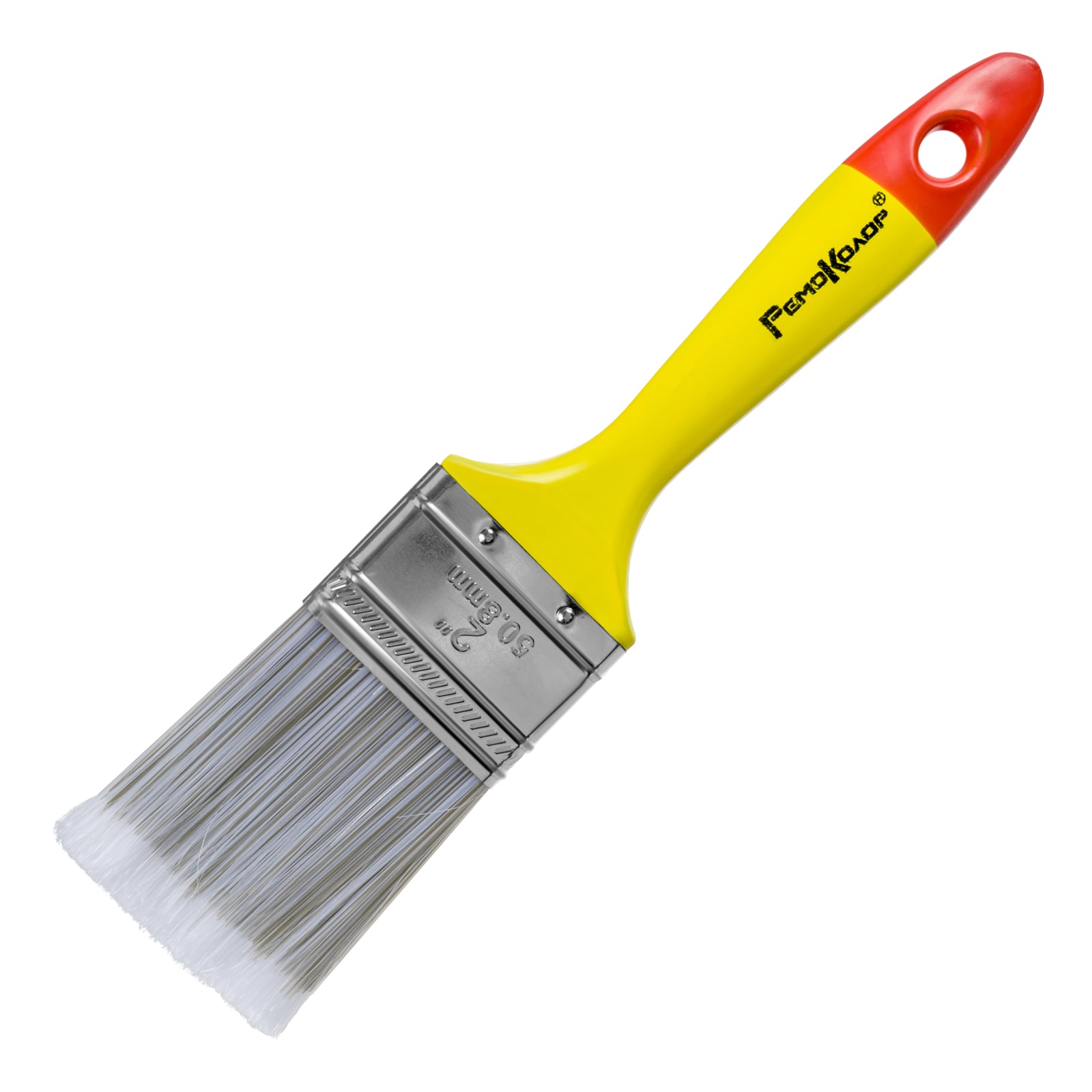 Кисть флейцевая РемоКолор имеет искусственную щетину из расщепленного волокна. Пластиковая рукоятка имеет отверстие для подвешивания. Используется для нанесения клея, грунтовки и краски на небольшие участки стен, конструкций и изделий. Наполняемость щетины на кончике кисти (TOPS) 100%.