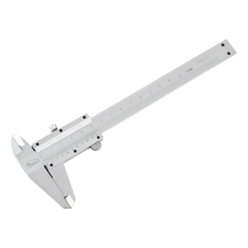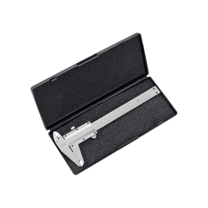 Механический, двухсторонний, с глубиномером, шаг 0,02 мм, упакован в пластиковый кейс. Материал изготовления: сталь. Назначение: для измерений с высокой точностью: наружных и внутренних размеров деталей и изделий; а также глубин отверстий.
