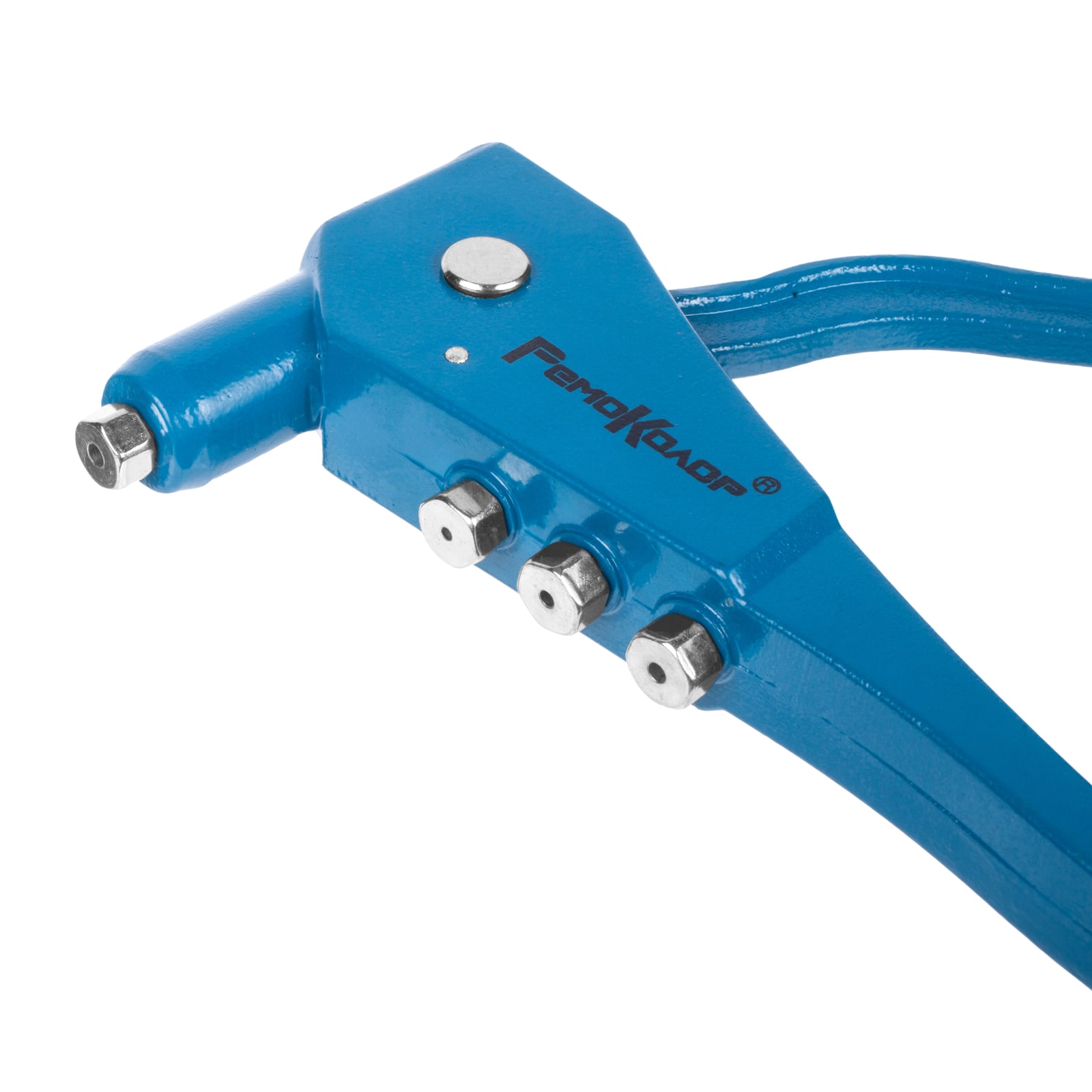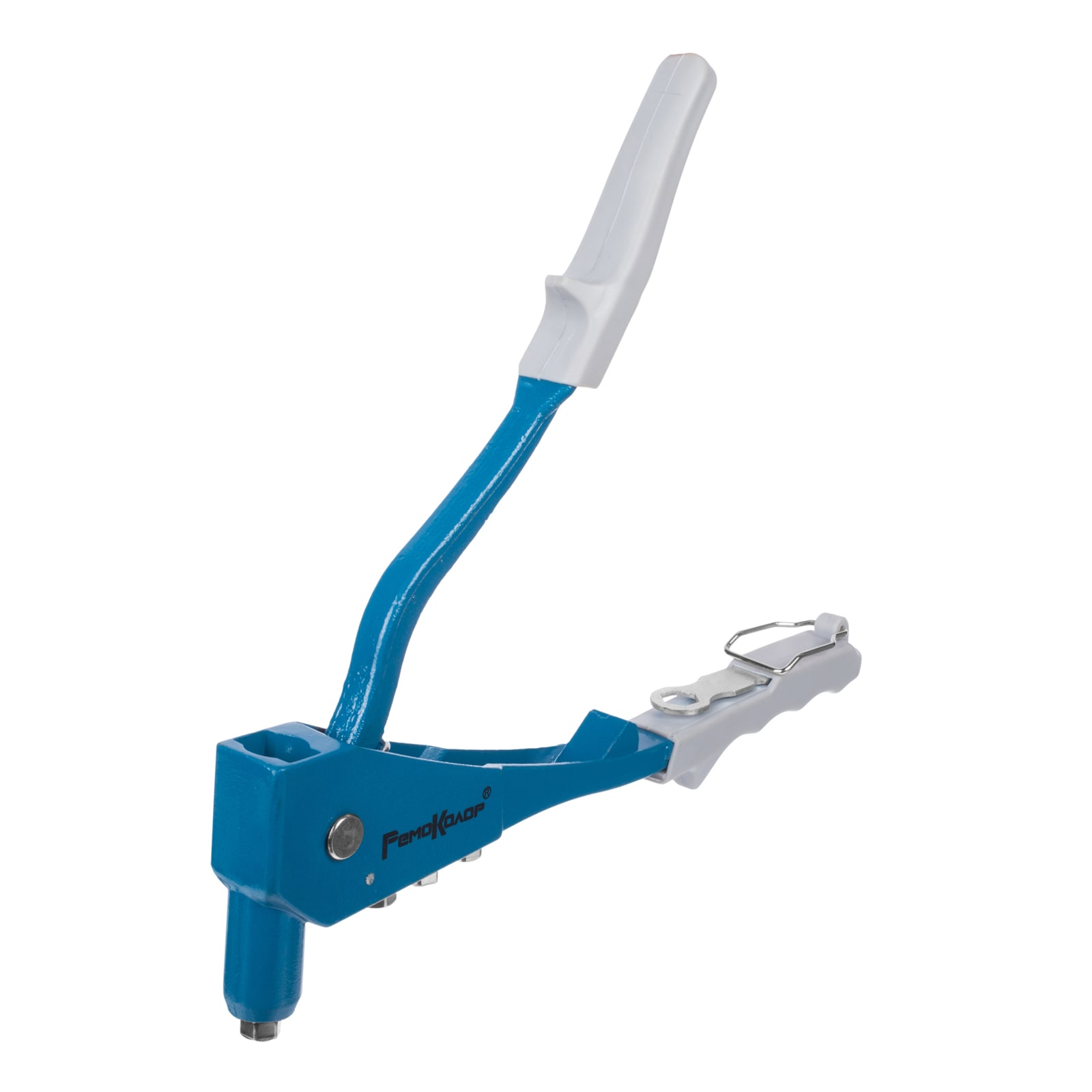 Заклепочник РемоКолор механический, литой, 250мм 26-0-001 предназначен для скрепления различных деталей вытяжными заклепками. Прочный литой корпус устойчив к износу, что продлевает срок службы. Эргономичные пластиковые рукоятки обеспечивают удобный захват при работе с инструментом.