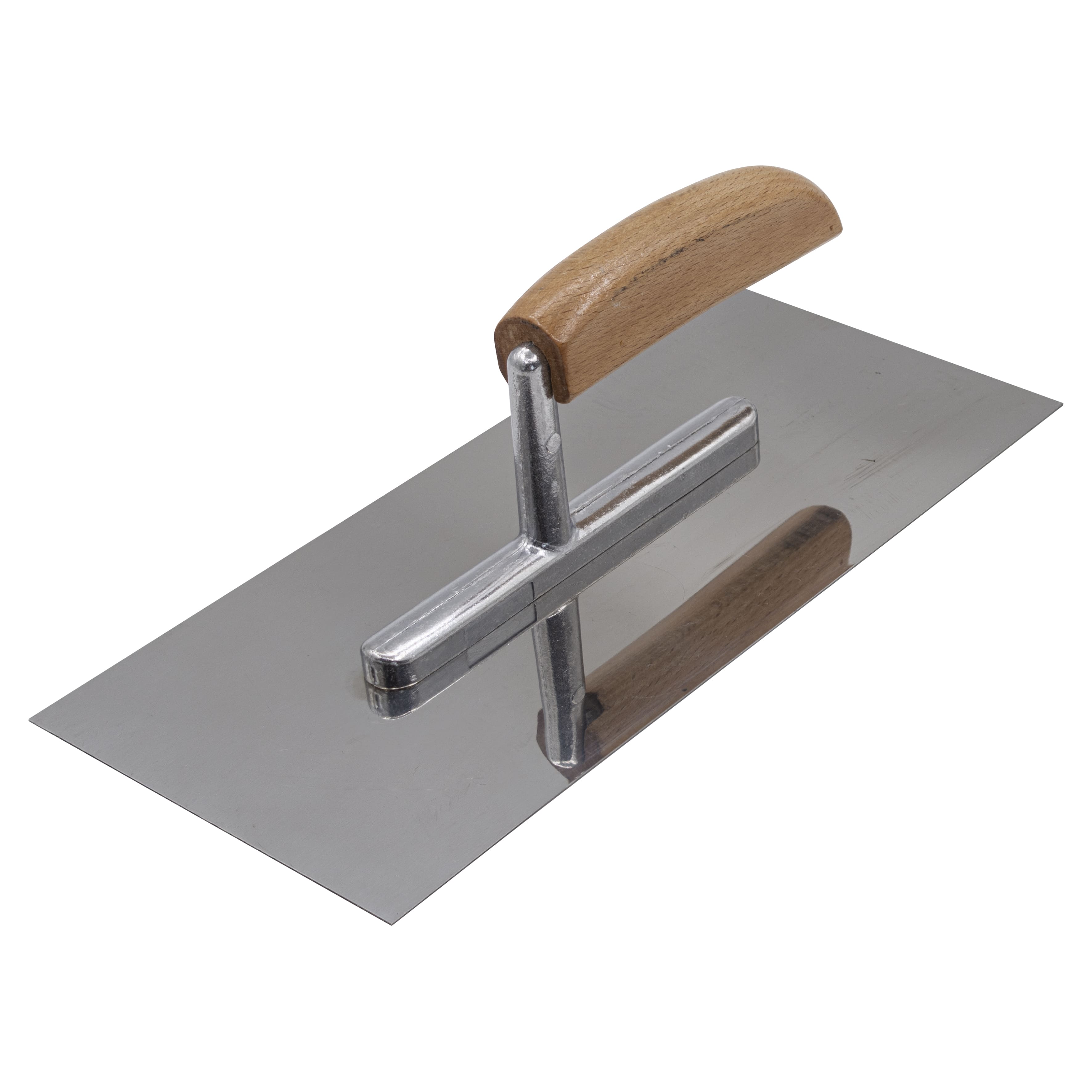 Прямая стальная гладилка Remocolor 27-0-000 рукоятка из бука 270х125 мм - применяется для равномерного распределения строительных растворов, смесей и клеев, сглаживания швов и неровностей. Рабочая поверхность изготовлена из зеркально отполированного полотна нержавеющей стали.