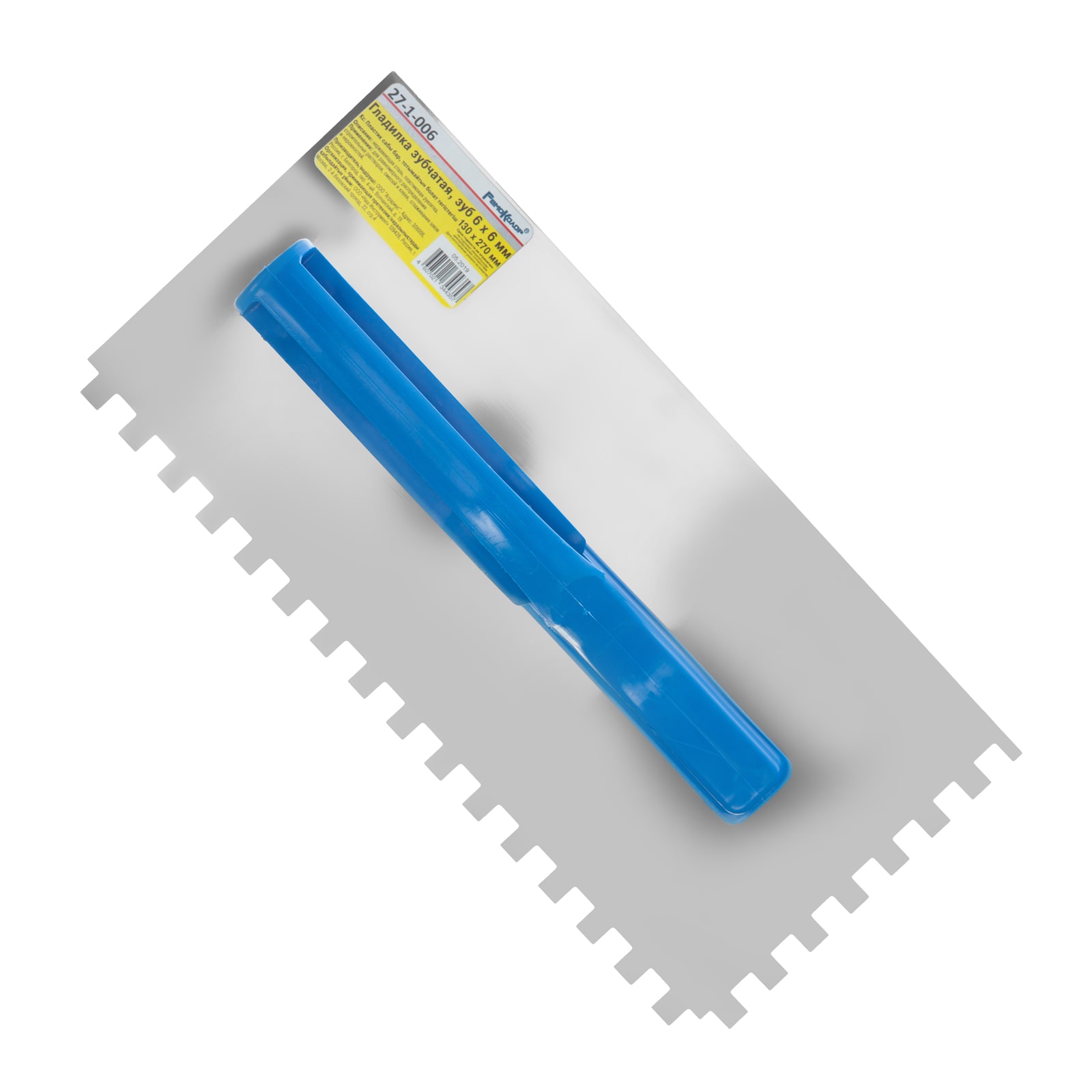 Зубчатая гладилка используется для выравнивания штукатурного слоя и равномерного нанесения клеевого состава. Рабочее полотно изготовлено из нержавеющей стали, что обеспечивает прочность и коррозионную стойкость. Материалы не прилипают к полированной поверхности гладилки, поэтому она подходит для нанесения даже быстрозастывающих смесей. Удобная рукоятка обеспечивает надежный хват.