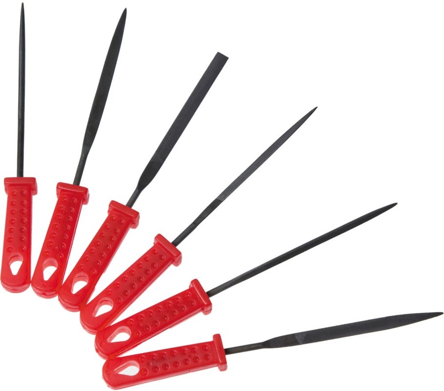 Набор надфилей, 6 предметов, 3x140 мм, пластмассовые рукоятки РемоКолор 40-0-006 изготовлен из углеродистой стали У12, У13 с твердостью режущей части 60-65 HRc. Предназначен для работы с металлом и керамикой. Удобные рукоятки позволяют удобно держать надфили в руке.