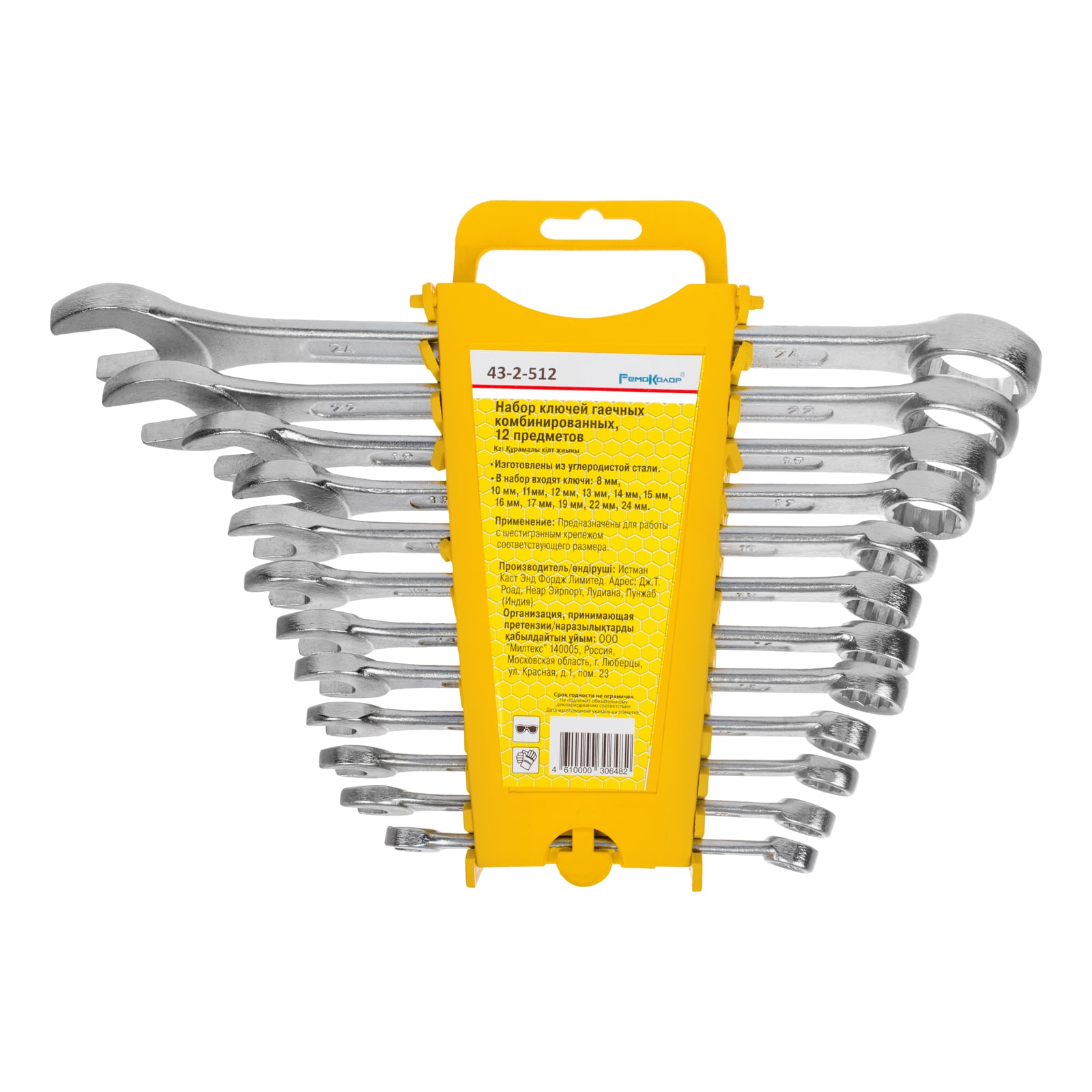 Набор гаечных комбинированных ключей РемоКолор, углеродистая сталь, 12 предметов 43-2-512 подойдет для захвата и откручивания крепежных соединений с внешней головкой. Изделие изготовлено из инструментальной углеродистой стали, которая обладает долгим сроком службы.