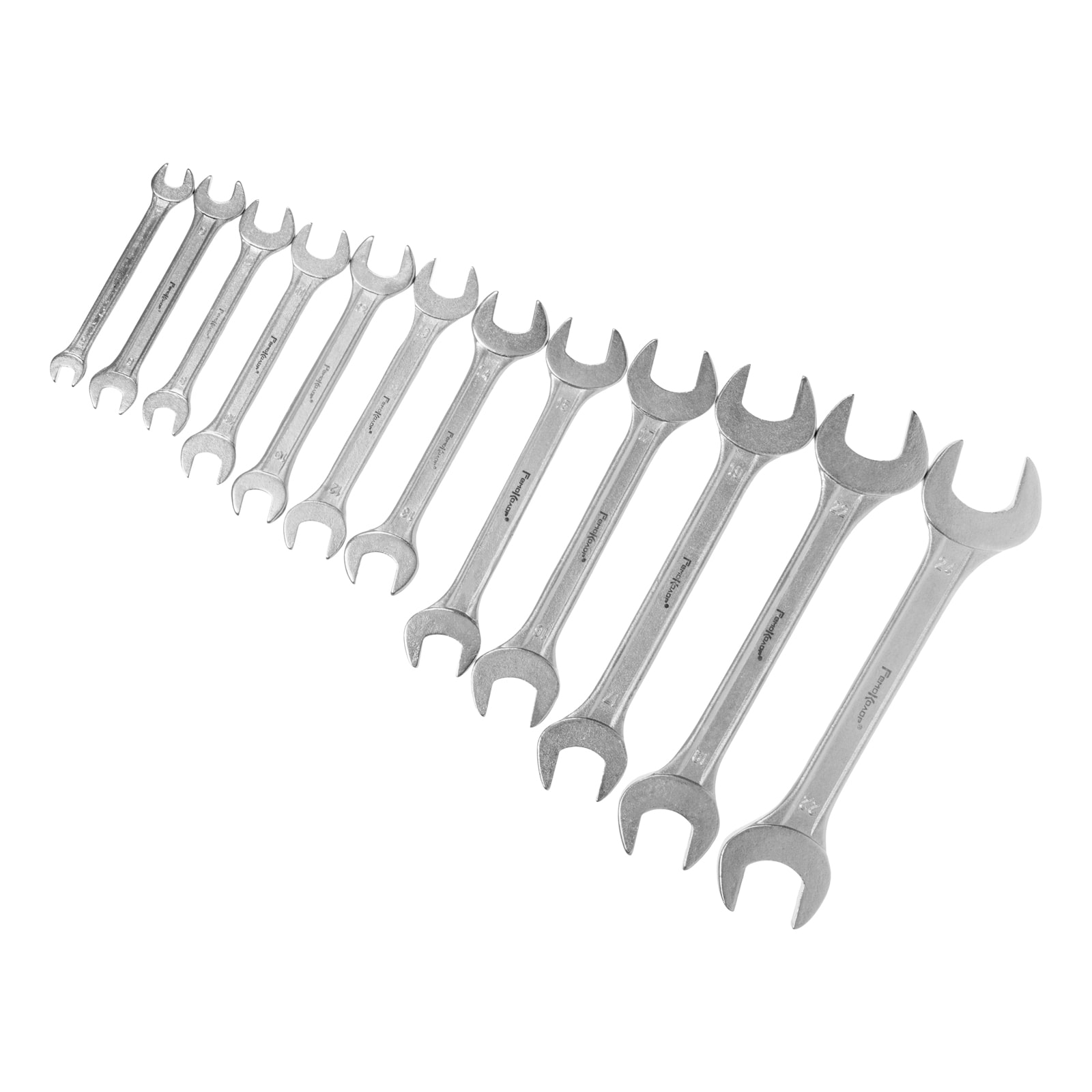 Набор гаечных рожковых ключей РемоКолор, углеродистая сталь, 12 предметов 43-2-522 предназначен для обслуживания резьбовых элементов с шестигранными головками различных размеров. Комплект изготовлен из инструментальной углеродистой стали, обеспечивает долгую службу.