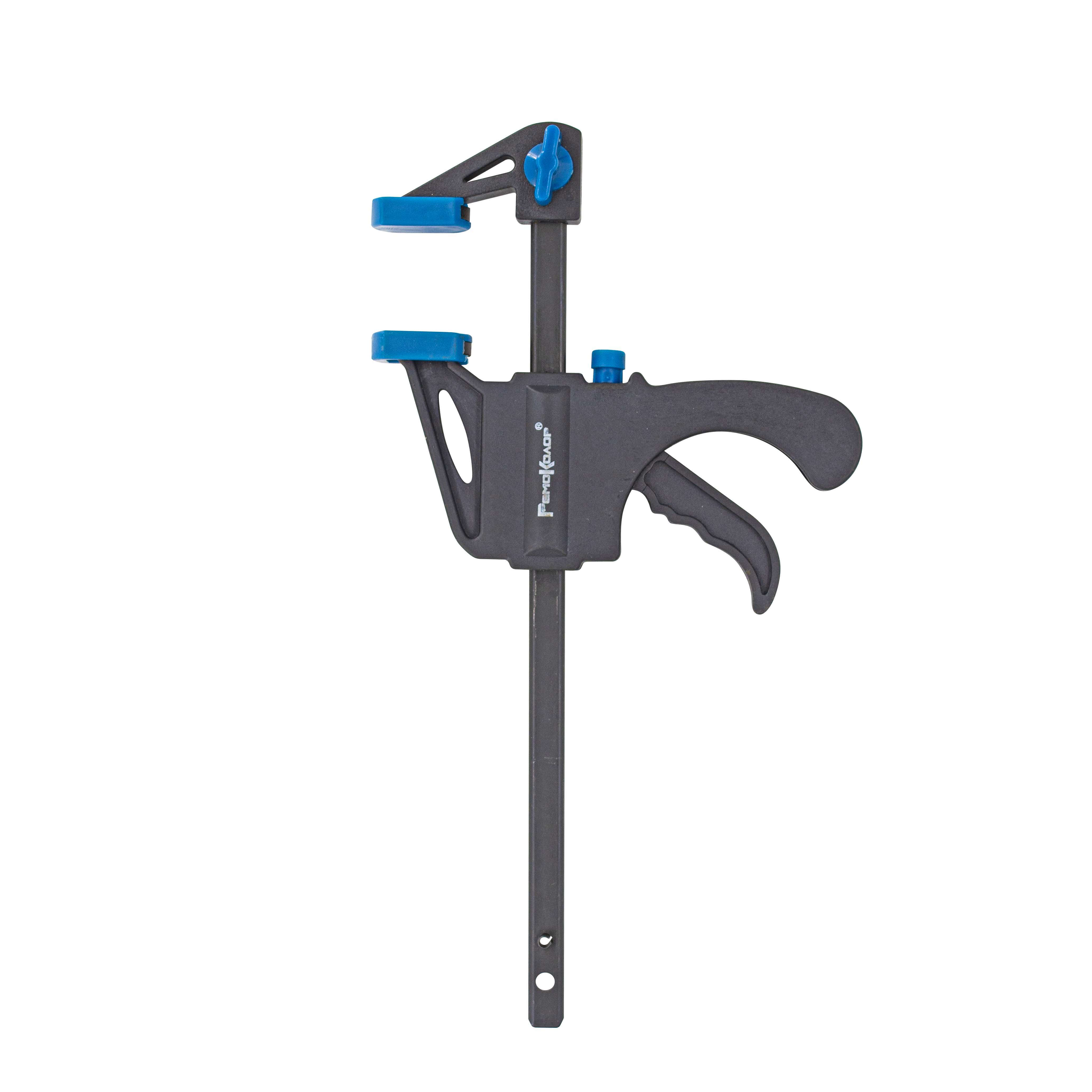 Быстрозажимная струбцина РемоКолор с фиксатором используется для надежной фиксации заготовок в процессе их обработки. Струбцина изготовлена из ударопрочной пластмассы, направляющая - стальная. Оксидированное покрытие исключает возникновение коррозии. Рабочие губки снабжены накладками для предотвращения повреждений обрабатываемых предметов. Опорная губка перемещается и фиксируется по всей длине направляющей при помощи ручки, а также может переставляться на другой конец направляющей, что позволяет использовать струбцину «на разжим».