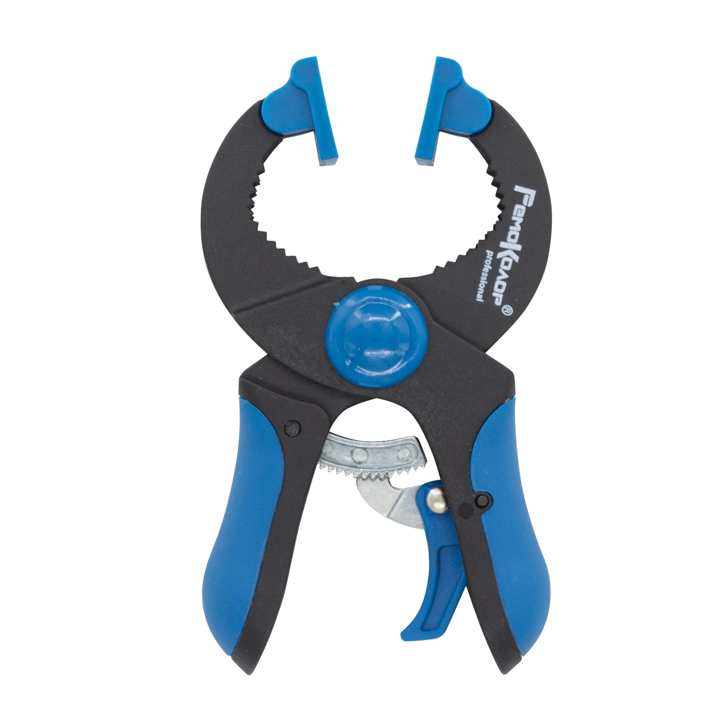 Клещеобразная струбцина РемоКолор пластиковый корпус, рычажный храповой механизм, используется для надежной фиксации заготовок в процессе их обработки. Корпус струбцины выполнен из пластика с резиновыми накладками. Оси, крепежные элементы и храповой механизм выполнены из стали. Храповой механизм обеспечивает надежную и жесткую фиксацию заготовок. При нажатии на курок происходит мгновенное раскрытие струбцины.