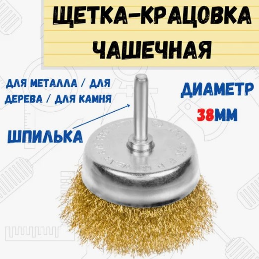 Щётка-крацовка чашечная со шпилькой из витой стальной проволоки предназначена для предварительной обработки поверхностей, удаления ржавчины или старой краски. Таким способом деталь подготавливается к дальнейшей обработке. Щётка подходит для работы с поверхностями из разных материалов: металла, дерева и камня.