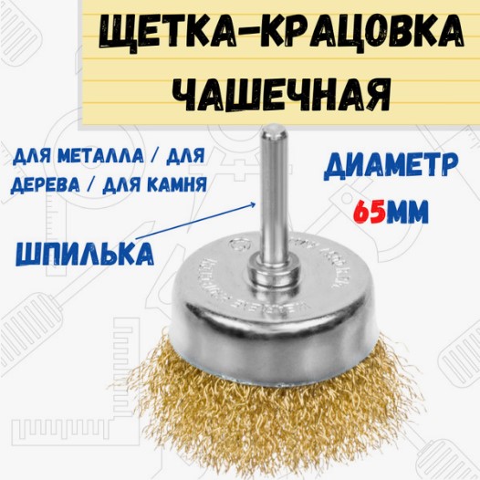 Щётка-крацовка чашечная со шпилькой из витой стальной проволоки предназначена для предварительной обработки поверхностей, удаления ржавчины или старой краски. Таким способом деталь подготавливается к дальнейшей обработке. Щётка подходит для работы с поверхностями из разных материалов: металла, дерева и камня.
