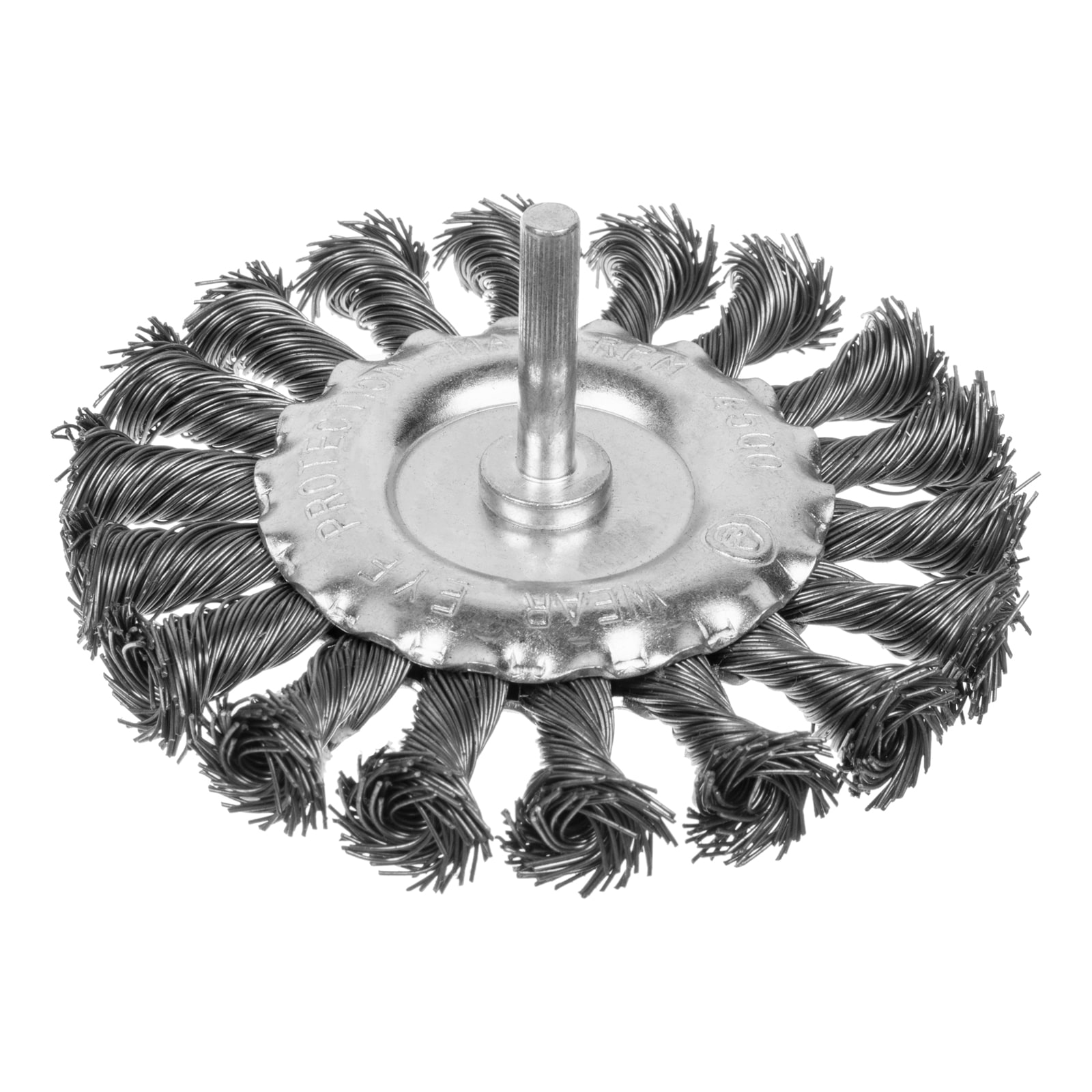 Щетка-крацовка дисковая со шпилькой, витая стальная проволока предназначена для очистки поверхностей деталей различной формы от ржавчины, грязи, заусенцев. Насадку можно использовать для работы с металлом, деревом и камнем. Также с помощью такой щётки можно добиться эффекта «старения» деревянных поверхностей.