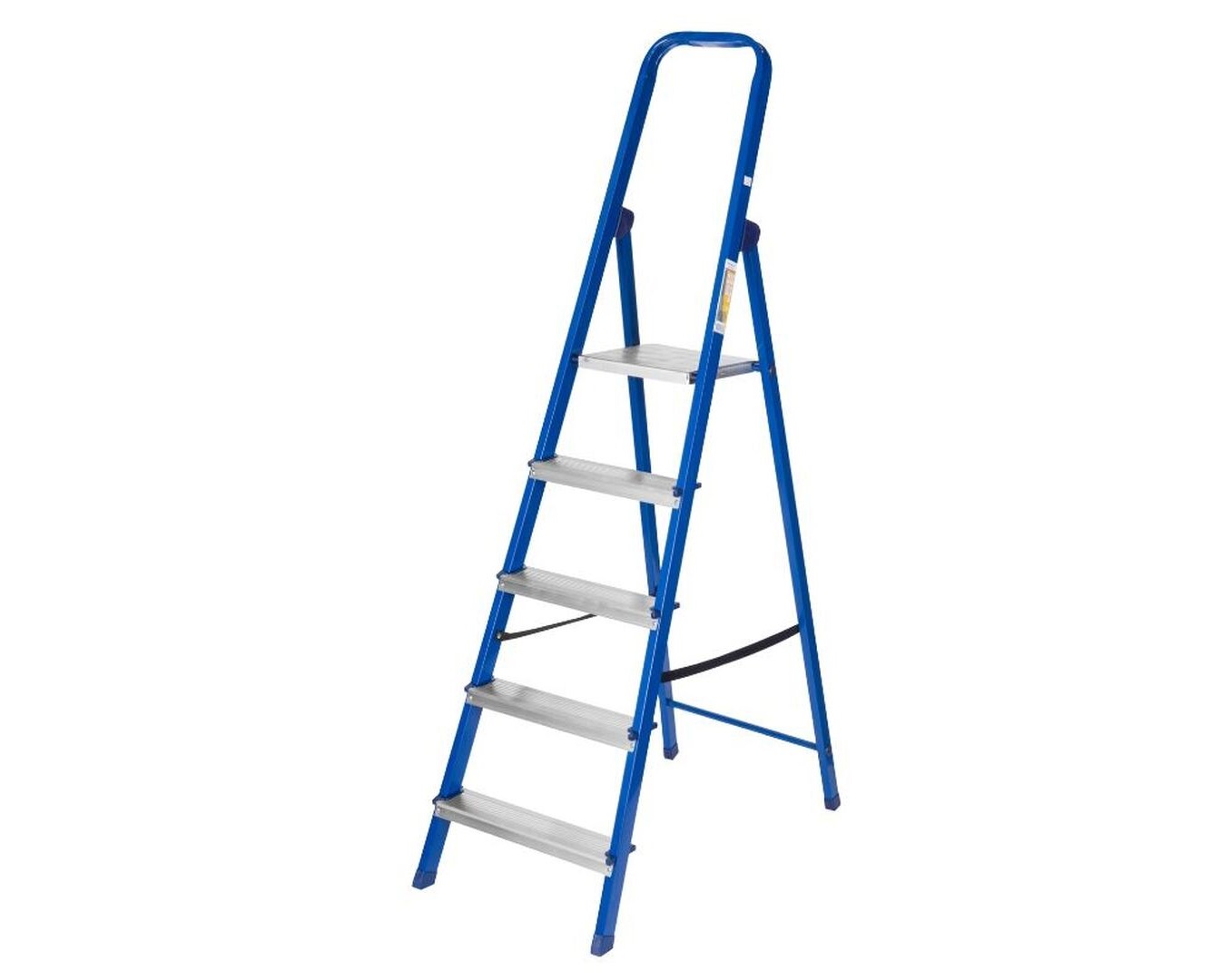 Стремянка используется для проведения различных бытовых и строительных работ на высоте. Модель рассчитана на высокую нагрузку, отличается хорошей устойчивостью. Ступени изготовлены из алюминия, рифление снижает вероятность скольжения стопы во время работы. Прочный страховочный ремень предотвращает выход стремянки из рабочего положения, что обеспечивает безопасную работу на верхних ступенях.
