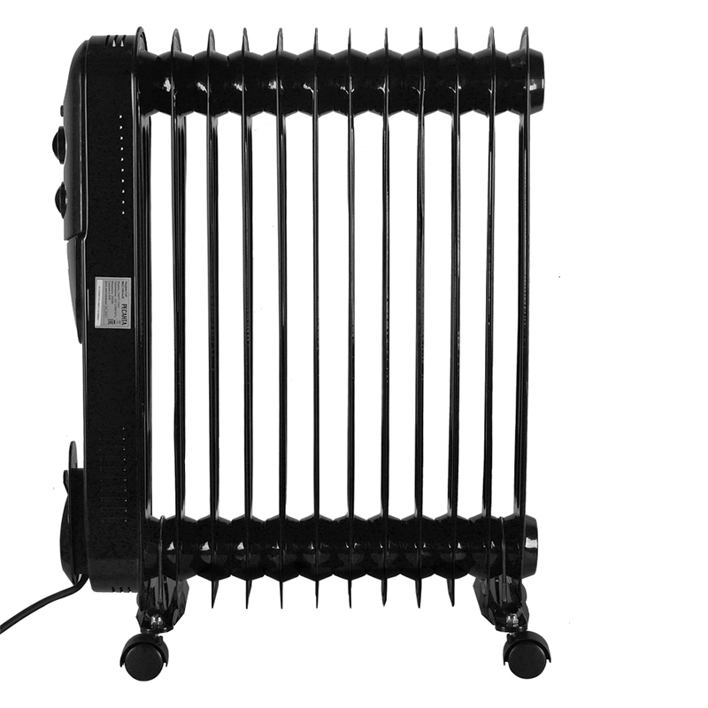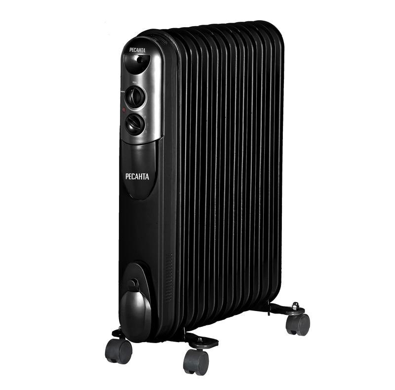 Масляный обогреватель Ресанта ОМПТ-12НЧ 67/3/15 предназначен для обогрева воздуха и создания комфортной атмосферы в холодное время года. В металлическом корпусе находится масло, нагреваемое до высокой температуры при помощи нагревательного элемента. Далее радиатор отдает тепло помещению. Масляный радиатор с 12 секциями оснащен термостатом, что позволяет ему автоматически поддерживать в помещении заданную пользователем температуру. Существенным плюсом является и то, что он обладает низкой температурой корпуса, благодаря чему практически не выжигает кислород в помещении.