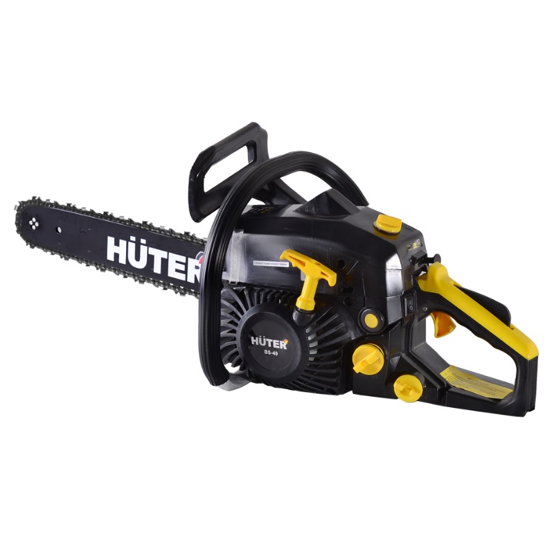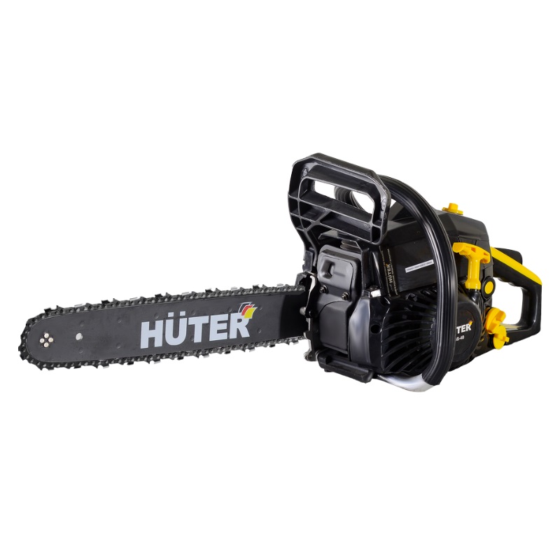 Цепная пила HUTER BS-40 поможет быстро и безопасно срубить небольшое дерево, спилить ветки, заготовить дрова.Агрегат работает от двухтактного бензинового двигателя объемом 40 см³ и мощностью 2,6 л.с. Емкость топливного бака 310 мл.Модель имеет компактную шину длиной 40 см, толщина звена 1,3 мм, шаг цепи 3/8". Регулировка механизма натяжения цепи упрощена за счет бокового расположения на корпусе. Металлический маслонасос автоматически подает смазку, которая облегчает скольжение цепи, защищает металлические детали от перегрева, увеличивает срок службы агрегата. Емкость бака для смазки 210 мл.Пила имеет плавный спуск и блокировку курка для защиты от случайного нажатия. Наличие щитка предотвращает риск травмирования в случае соскока или разрыва цепи. Модель оснащена резиновыми амортизаторами, снижающими вибрацию, что позволяет пользоваться устройством длительное время. Благодаря системе «Легкий старт», двигатель можно завести без особых усилий.Надежная, безопасная и простая в управлении бензопила HUTER BS-40 приг