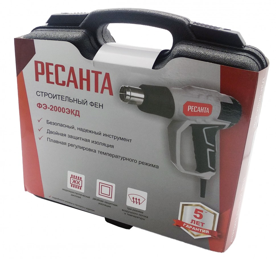 Строительный фен Ресанта ФЭ-2000ЭКД предназначен для быстрого удаления лакокрасочного покрытия, соединения термопластиковых труб, просушки поверхностей и других профессиональных и бытовых задач. Оснащен ЖК-дисплеем и клавишами для точной регулировки температуры.