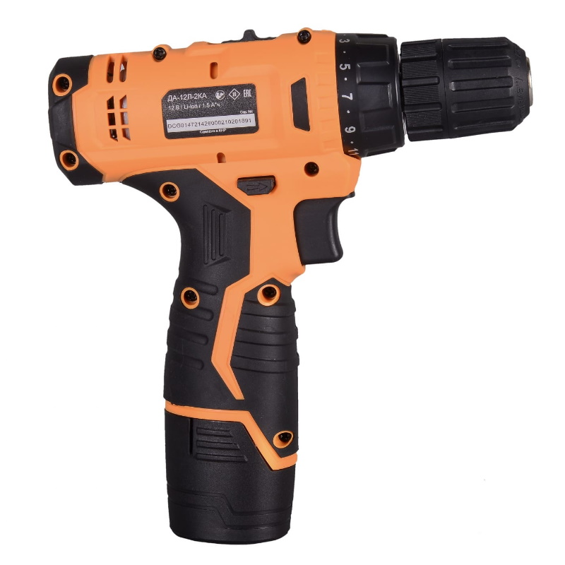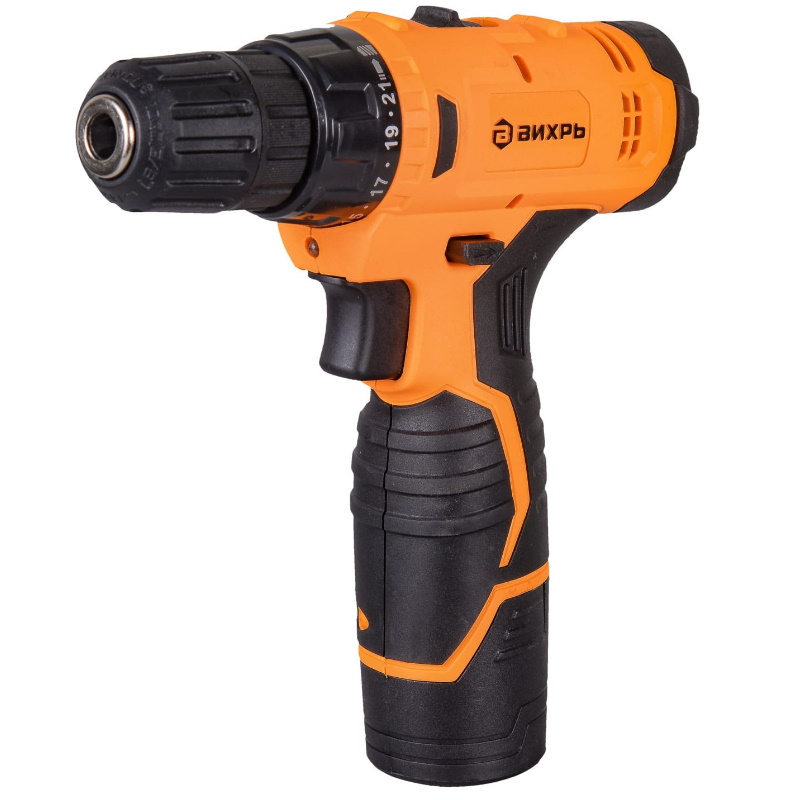Дрель-шуруповерт аккумуляторная ВИХРЬ ДА-12Л-2КА – незаменимый помощник мастера в ремонте или строительстве. Прибор аккуратно сверлит отверстия на поверхностях из дерева и металла, а также накрепко закручивает шурупы. В комплект к дрели-шуруповерту поставляется удобный кейс, в котором можно хранить инструмент, зарядку к нему и другие рабочие детали. Не требует подключения к сети, что позволяет использовать ее в помещениях, где нет доступа к системе электропитания. Рабочие элементы легко заменить благодаря быстрозажимному патрону. Для ослабления креплений и выкручивания шурупов есть обратный ход. Форма рукоятки удобная, с резиновыми вставками, не скользит в руке. Система охлаждения мотора за счет вентиляционных отверстий на корпусе. Модель работает от надёжного литий-ионного аккумулятора (Li-Ion).