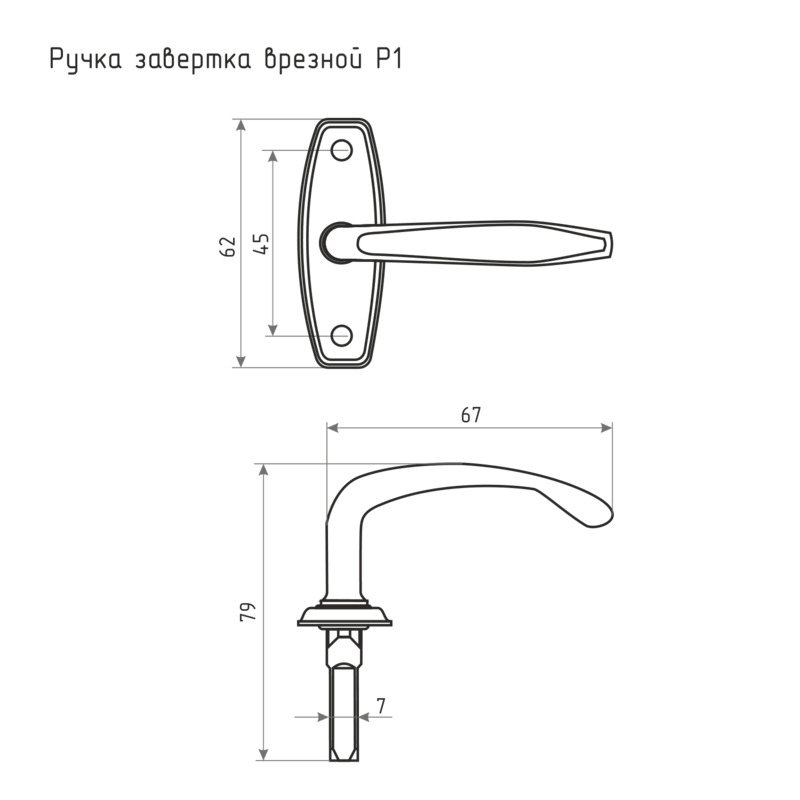 Ручки используются с врезными оконными завертками. Модель Р1 ‒ цельнометаллическая с защитным декоративным покрытием снабжена крепежной планкой с двумя отверстиями под крепеж.