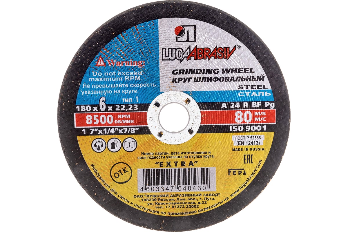Диск шлифовальный по металлу 180х22х6 мм, А24 Луга D11201802260000 предназначен для шлифовки разного рода металлических поверхностей, а так же снятия коррозионной пленки с деталей и изделий.