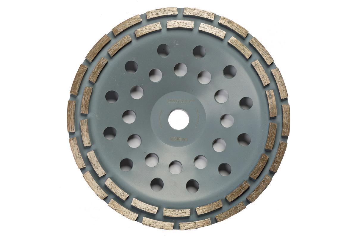 Чашка алмазная шлифовальная двухрядная Premium OXCRAFT PO000134219 используется совместно с угловыми шлифовальными машинами. Применяется для шлифования поверхностей из бетона, кирпичной кладки, гранита, камня. Турбированная поверхность чашки не требует водяного охлаждения во время работы.