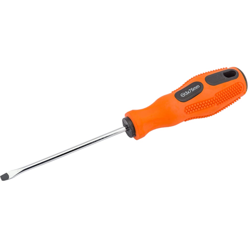 Плоская отвертка наиболее распространенный инструмент для работы с крепежом. Используется для установки и съема крепежа с прямым шлицом. Конструкция максимально простая: металлический стержень, который с одной стороны заточен под определенный шлиц, а с другой имеет рукоятку, за которую отвертку удобно держать.