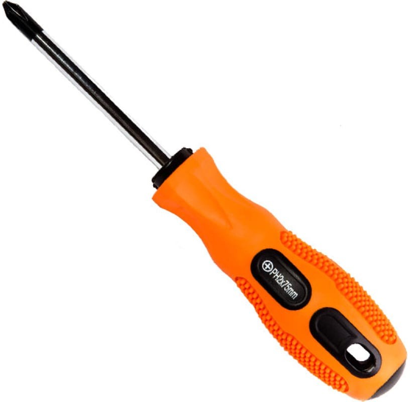 Крестовая отвертка наиболее распространенный инструмент для работы с крепежом. Применяется для работы с крепежом, имеющим крестовой шлиц типа филлипс. Конструкция максимально простая: металлический стержень, который с одной стороны заточен под определенный шлиц, а с другой имеет рукоятку, за которую отвертку удобно держать.