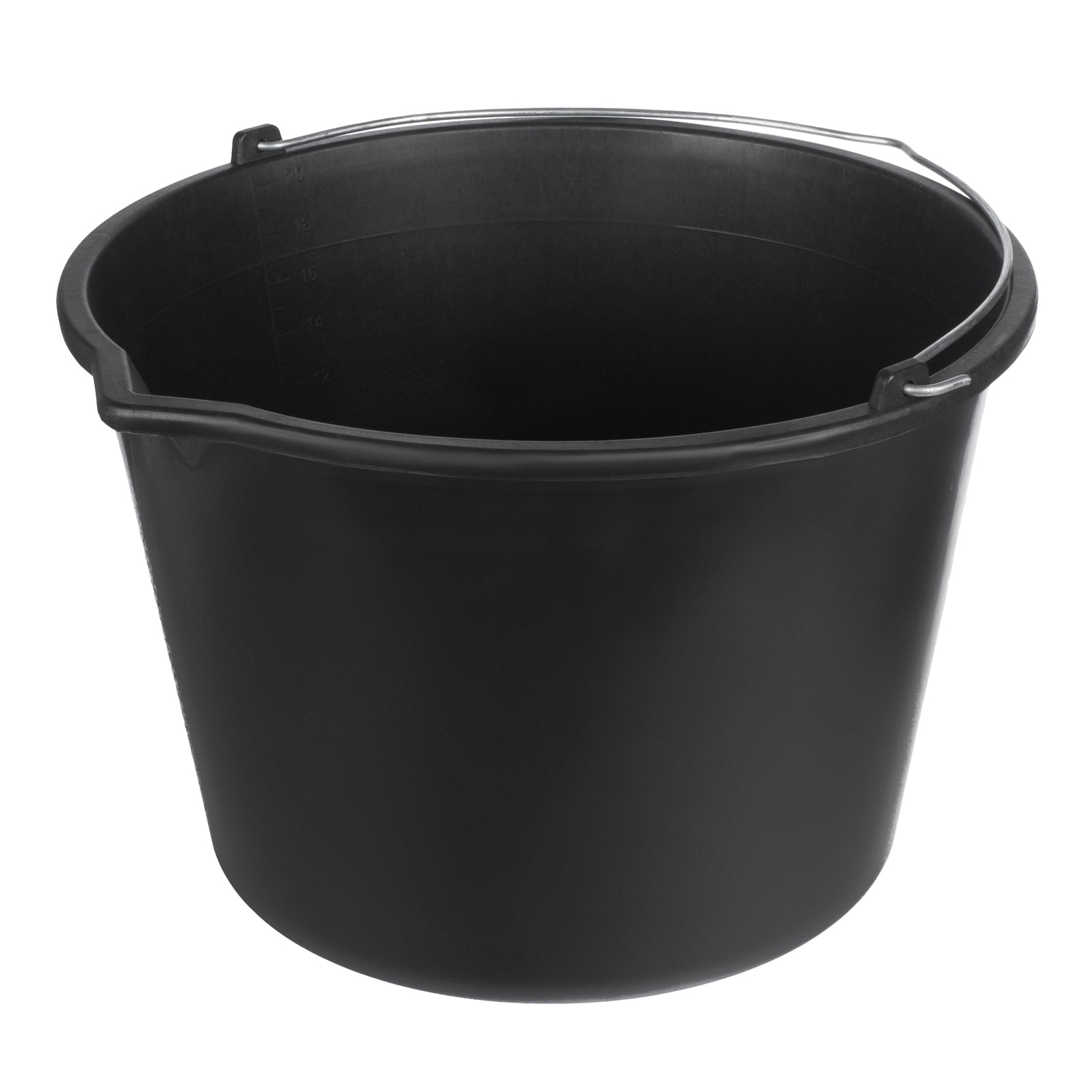 Имеет мерную шкалу. Изготовлено из ударопрочного пластика. Ручка металлическая. Внутри ведра нанесена разметка в литрах. Ведро предназначено для размешивания и переноски строительных и клеевых штукатурных растворов.