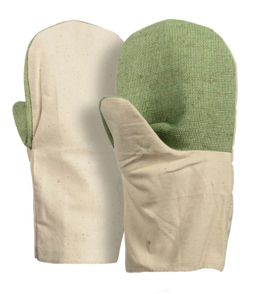 Во время выполнения грубых механических работ используют защитные рукавицы с брезентовым наладонником. Данная модель сделана из хлопчатобумажного полотна высокой плотности (240 г/м²). Ткань отличается высокой прочностью, не рвется и не протирается. Брезентовый наладонник (плотность составляет 420 г/м²) обеспечивает надежную защиту руки работника как от механических воздействий, так и от ожогов. Хлопчатобумажная ткань поддерживает эффективный влаго- и воздухообмен, поэтому в перчатках удобно работать даже в условиях высоких температур.