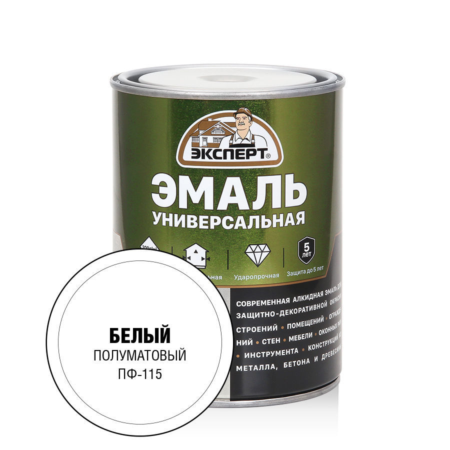 Полуматовая алкидная эмаль ПФ 115 ЭКСПЕРТ для защитно-декоративной окраски строений, стен, ограждений, мебели, оконных рам, инструмента, различных конструкций и предметов снаружи и внутри помещений. ОСОБЕННОСТИ: Для наружных и внутренних работ Наносится на металл, древесину, бетон, штукатурку, кирпич, камень и т.п. Обладает хорошей укрывистостью и адгезией Образует атмосферостойкое покрытие Ударопрочная Полуматовая степень блеска