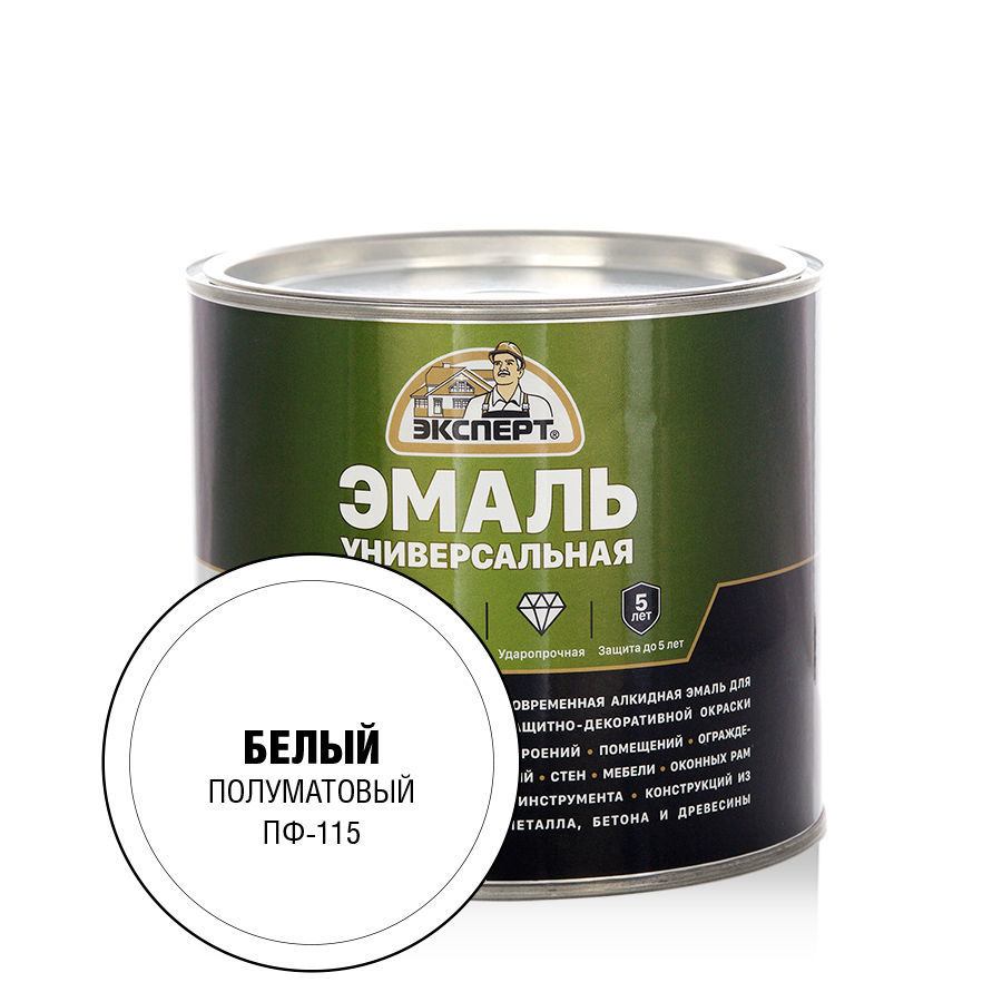 Полуматовая алкидная эмаль ПФ 115 ЭКСПЕРТ для защитно-декоративной окраски строений, стен, ограждений, мебели, оконных рам, инструмента, различных конструкций и предметов снаружи и внутри помещений. ОСОБЕННОСТИ: Для наружных и внутренних работ Наносится на металл, древесину, бетон, штукатурку, кирпич, камень и т.п. Обладает хорошей укрывистостью и адгезией Образует атмосферостойкое покрытие Ударопрочная Полуматовая степень блеска