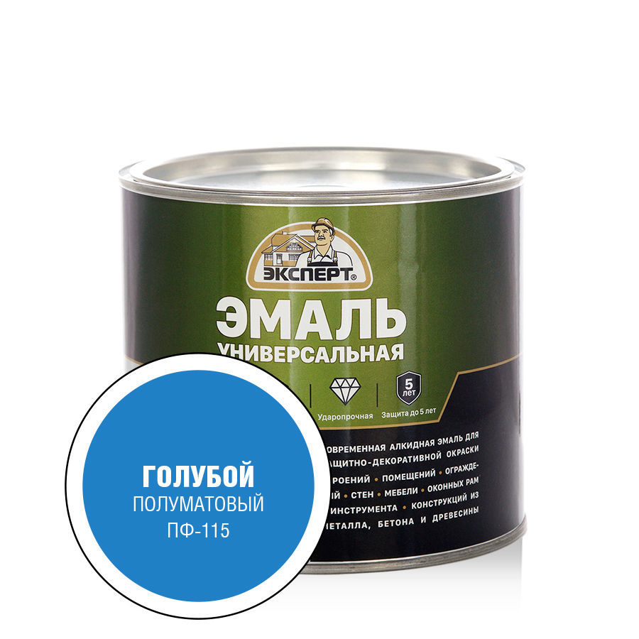 Полуматовая алкидная эмаль ПФ 115 ЭКСПЕРТ для защитно-декоративной окраски строений, стен, ограждений, мебели, оконных рам, инструмента, различных конструкций и предметов снаружи и внутри помещений. ОСОБЕННОСТИ: Для наружных и внутренних работ Наносится на металл, древесину, бетон, штукатурку, кирпич, камень и т.п. Обладает хорошей укрывистостью и адгезией Образует атмосферостойкое покрытие Ударопрочная Полуматовая степень блеска