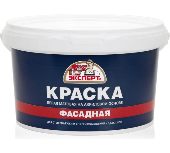 Фасадная краска применяется для окраски фасадов и цоколей зданий, а также стен снаружи и внутри помещений. Благодаря составу, продукт обладает отличными адгезионными свойствами к поверхностям: бетонным, оштукатуренным, кирпичным, асбоцементным, цементным, ДСП и ДВП. Краска равномерно распределяется по основанию при помощи валика, кисти или краскораспылителя, образуя прочное покрытие стойкое к вредным факторам окружающей среды. Состав белого цвета имеет высокую степень укрывистости. Возможность ручной колеровки акриловыми колорантами или пигментами для красок на водной основе, позволяет получить желаемый оттенок. Преимущества: Для наружных и внутренних работ. Высокая адгезия к минеральным поверхностям. Отличная укрывистость. Атмосферостойкая. Возможность ручной колеровки. Простое нанесение (не требует специального оборудования).