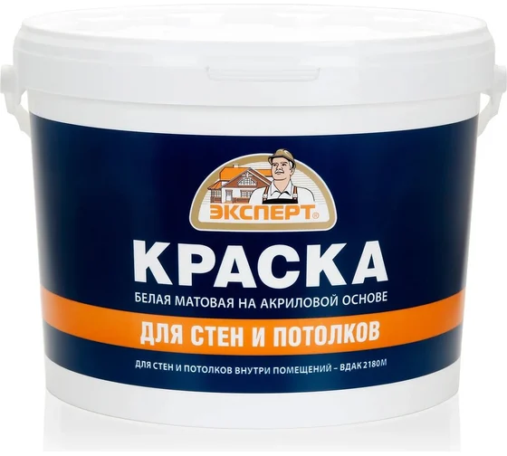 Краска для стен и потолков ЭКСПЕРТ белая, 14 кг 10845 применяется для окраски стен и потолков внутри сухих помещений. Благодаря составу, продукт обладает отличными адгезионными свойствами к поверхностям: бетонным, оштукатуренным, гипсовым, зашпатлеванным, гипсокартонным, а также к обоям под покраску. Краска белого цвета имеет высокую степень укрывистости и стойкость к истиранию. Возможность ручной колеровки акриловыми колорантами или пигментами для красок на водной основе, позволяет получить желаемый оттенок.