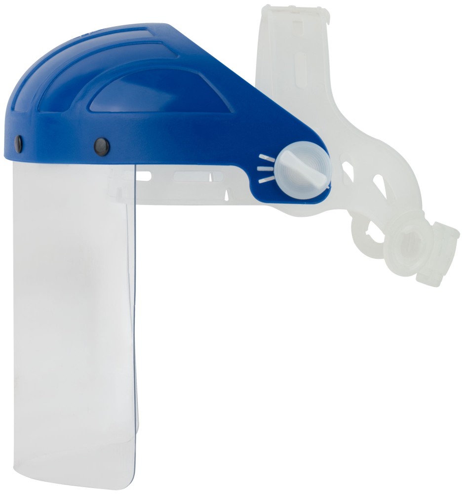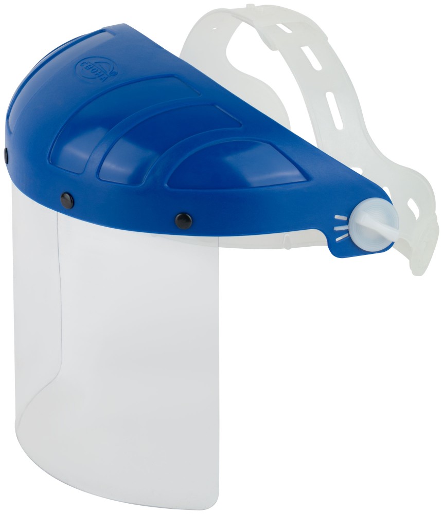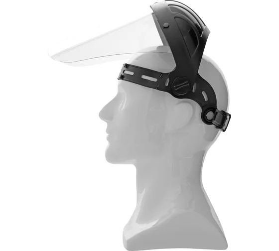 Теменная и налобная ленты регулируются при помощи реечного механизма, обеспечивая комфортную посадку щитка даже при ношении с головным убором