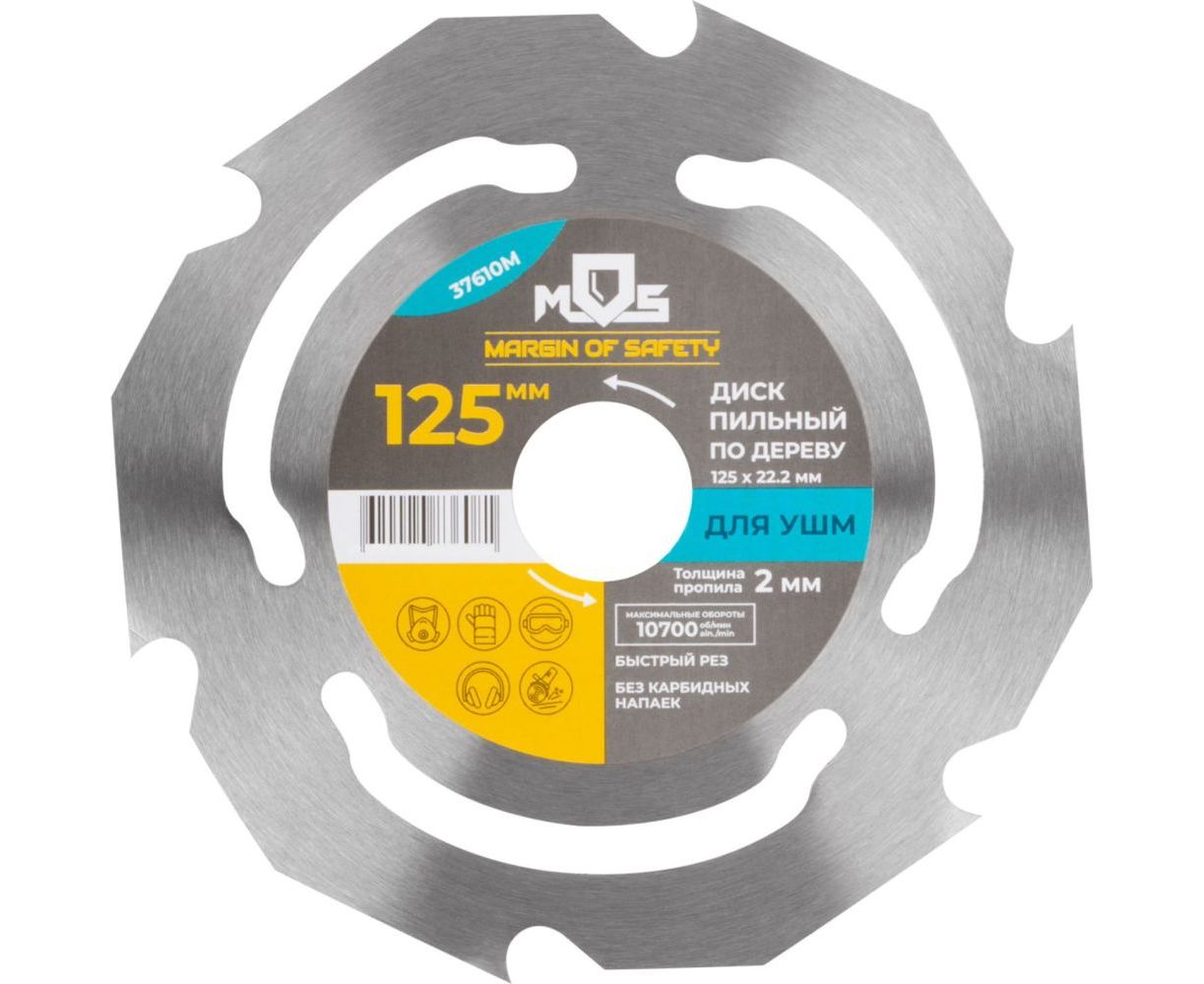 Диск пильный по дереву 6 зубьев 125 мм MOS 37610М - предназначен для УШМ. Быстрый рез. Без карбидных напаек. Полностью закален. Материал - термообработанная инструментальная сталь.
