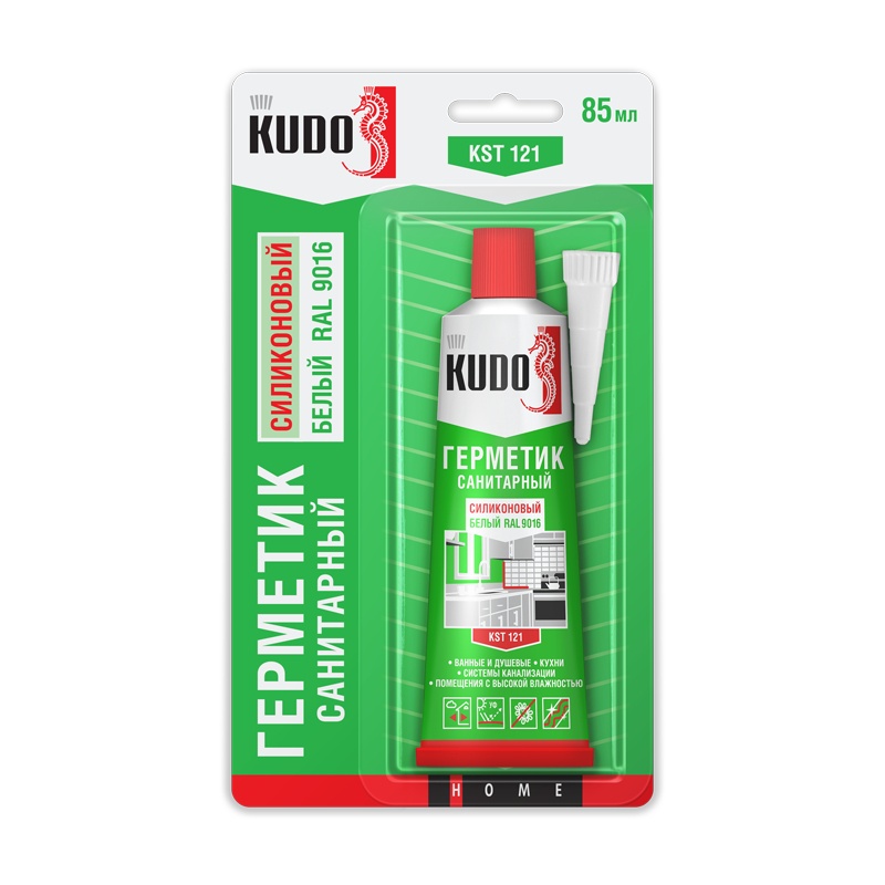 Высококачественный силиконовый герметик KUDO с системой отверждения ацетокси применяется при общих бытовых, ремонтных и строительных работах. Cодержит специальные антисептические добавки, препятствующие образованию плесени и грибков. Идеально подходит для помещений с повышенной влажностью: ванных комнат, душевых кабин, кухонь, для остекления и т.д. Применяется для уплотнения соединительных швов вокруг ванн, раковин, бассейнов; герметизации стыков при установке сантехнического оборудования, гидроизоляции поверхностей, заделки швов между плитками. Силиконовый санитарный герметик KUDO отлично подходит для герметизации швов в ванной. Образует прочный долговечный шов, после отверждения сохраняет деформационную подвижность до ±25%, не собирает пыль, устойчив к воздействию большинства моющих и чистящих средств, стоек к УФ‑излучению, атмосферным воздействиям, температурным перепадам и практически любым агрессивным средам. Тиксотропный, не растекается и не сползает по шву.