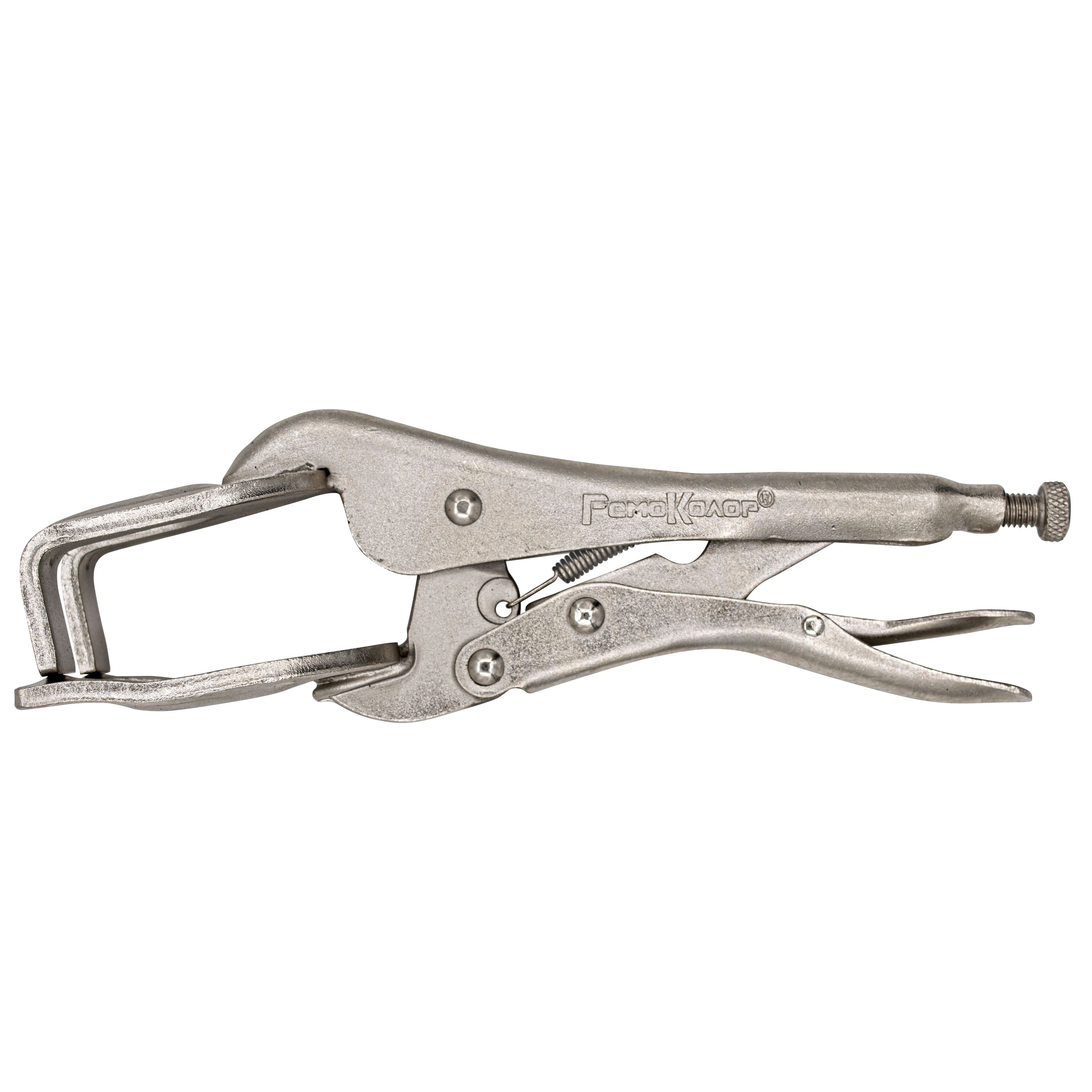 Двойной ручной зажим 225 мм, используется для точечной фиксации деталей различной формы. Необходим при проведении сварочных и слесарно-монтажных работ. Форма губок позволяет зажимать заготовки в двух точках одновременно, а запирающий механизм не дает им раскрыться.