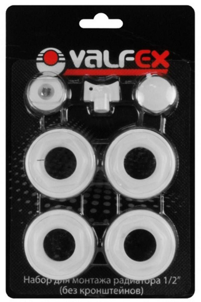 омплекты для монтажа радиаторов VALFEX предназначены для монтажа алюминиевых, биметаллических и чугунных радиаторов с присоединительным размером верхнего и нижнего коллекторов 1" (внутренняя резьба). В состав комплекта включены четыре футорки 1 x 3/4" (1 x 1/2") – две правые и две левые. Футорки снабжены силиконовыми прокладками. Также в комплект включены пробка для футорки, ручной самоуплотняющийся воздухоотводчик, ключ для воздухоотводчика. Купить оптом