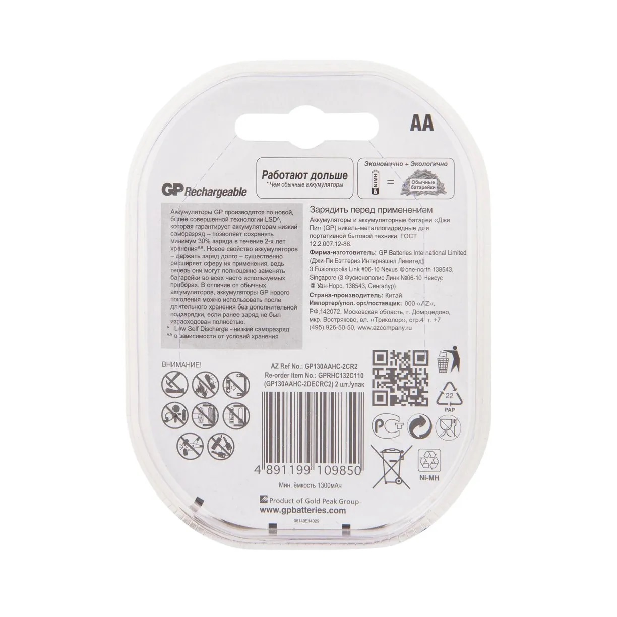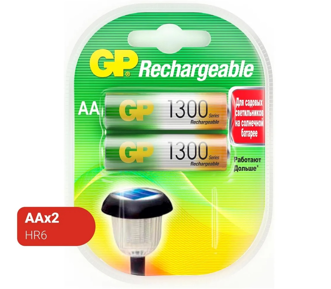 Перезаряжаемые аккумуляторы GP 130AAHC AA, емкость 1300 мАч - 2 шт 130AAHC-2DECRC2 имеют большую ёмкость по сравнению со стандартными NiCd (никель-кадмиевыми), а также более продолжительное время эксплуатации. Они готовы к стабильной работе в широком диапазоне температур: от -20°С до +50°С – вы можете устанавливать их в оборудование, которое должно работать на улице в любое время года. Аккумуляторы GP можно использовать в бытовых приборах и в профессиональной технике: радиотелефонах, рациях, MP3-плеерах, портативных аудиоустройствах, приставках и детских игрушках, фотоаппаратуре и так далее. В отличие от обычных одноразовых батареек, «пальчиковые» аккумуляторы стабильно держат напряжение на уровне 1,2 вольта. А когда энергия будет исчерпана, напряжение быстро снижается. Батареи GP – выгодное приобретение по соотношению цена/качества. Если учитывать, что каждый аккумулятор рассчитан на 500 циклов заряд/разряд, то при покупке упаковки из двух элементов, вы экономите на приобретении до 1000 одноразовых