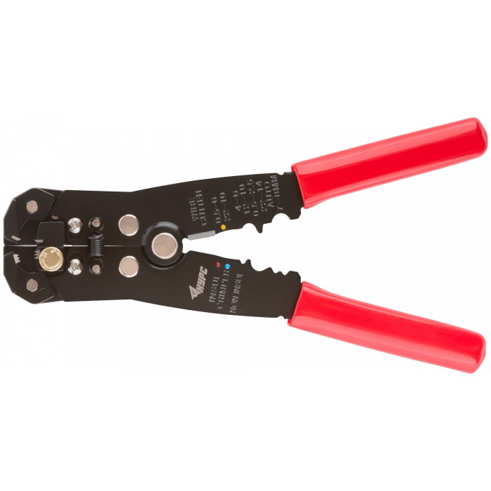 Клещи - автомат для зачистки изоляции диаметр 0,2-6,0 мм, 205 мм 60029 Регулируемый диаметр. Для снятия изоляции с проводов и обжима клемм. Для проводов с сечением 0,2 - 6,0 мм2. Материал инструментальная сталь, цинковый сплав, пластиковые ручки.
