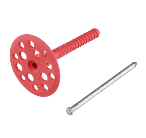 Предназначен для крепления легких теплоизоляционных изделий к внутренним и наружным поверхностям зданий различного назначения, в том числе в системах вентилируемых фасадов, штукатурных фасадов и колодезной кладке, в такие основания, как тяжелый и легкий бетон, полнотелый керамический и силикатный кирпич, керамзитобетонный блок. За счет широкой шляпки дюбель часто называют "парашют" или тарельчатый дюбель. Конструкция широкой шляпки дюбеля плотно прижимает теплоизоляцию, отверстия позволяют утопить дюбель в клее без потери эластичности шляпки. В комплекте с дюбелем поставляется пластмассовый гвоздь, который для большей прочности армирован стекловолокном. Цвет изделия не влияет на технические характеристики.