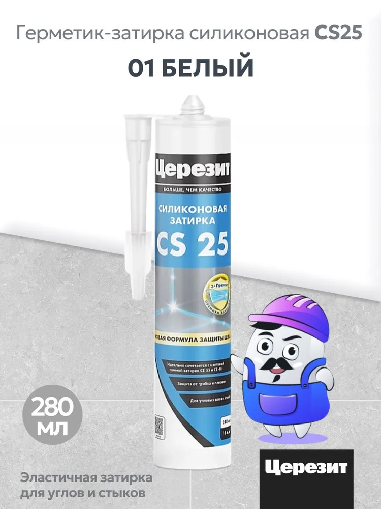 Силиконовая затирка ЦС 25, CS 25 предназначена для герметизации угловых, деформационных и примыкающих к санитарно-техническому оборудованию (ваннам, раковинам и др.) швов плиточных облицовок в помещениях с повышенной влажностью: ванных комнатах, душевых, кухнях, туалетах и т.д. Обладает высокой адгезией к эмалированным поверхностям, стеклу, фарфору и фаянсу. Формула Trio Protection обеспечивает длительную стойкость к грибку и плесени. Благодаря высокой стойкости к УФ-излучению и озону может применяться при наружных работах. Не имеет адгезии к резине, битуму, гудрону, тефлону, полиэтилену и материалам, выделяющим масла, пластификаторы или растворители. Содержит фунгициды и при отверждении выделяет уксусную кислоту, поэтому не пригодна для контакта с пищевыми продуктами, питьевой водой, мрамором, известняком, зеркалами, корродирующими металлами (свинцом, медью, цинком, железом) и герметизации аквариумов.