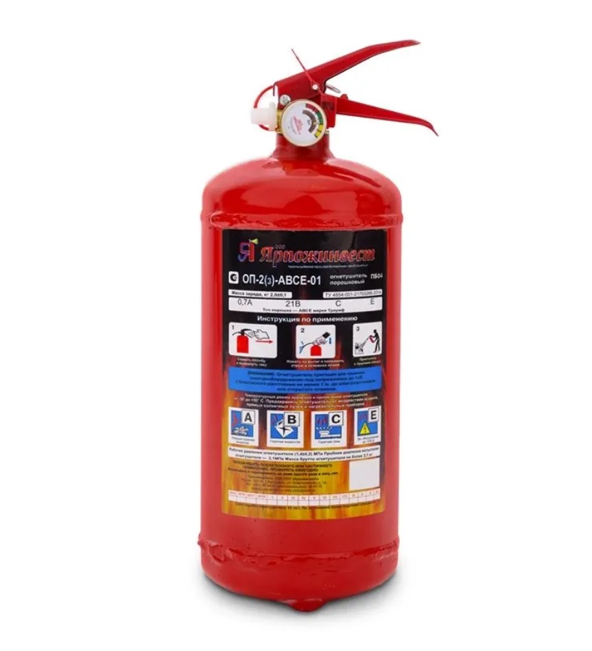 Изготавливается в соответствии с ГОСТ Р 51057-2001. Огнетушитель порошковый ОП-2 АВСЕ предназначен для защиты помещений производственного и хозяйственного назначения, применения на автомобильном, железнодорожном, речном транспорте, морских судах и в бытовых условиях в качестве первичных средств тушения.Срок службы 10 лет (включая перезарядку). Температура эксплуатации и хранения от -52° до +50°.