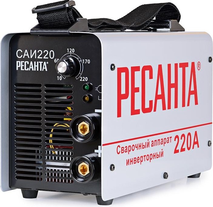 Инверторный сварочный аппарат Ресанта САИ-220 подходит для сварки металлических конструкций постоянным током покрытым электродом до 5 мм. Сварочный ток регулируется от 10 до 220 А ровных сварных швов и для более точной работы.Одна из самых оптимальных моделей с прекрасным соотношением габаритов и мощности. Аппарат простой в использовании, не требует специальных знаний, так что разобраться с ним не стоит и труда даже новичку. Широкий ремень позволяет удобно носить аппарат на плече.Электроника сварочного аппарата плавно регулирует ток, что позволяет проводить сварочные работы различной сложности.Аппарат подключается к обычной однофазной розетке с напряжением 220В, не чувствителен к перепадам напряжения сети.Без проблем справляется с металлическими конструкциями толщиной до 5 мм, не теряя мощности и расходуя минимум электроэнергии.