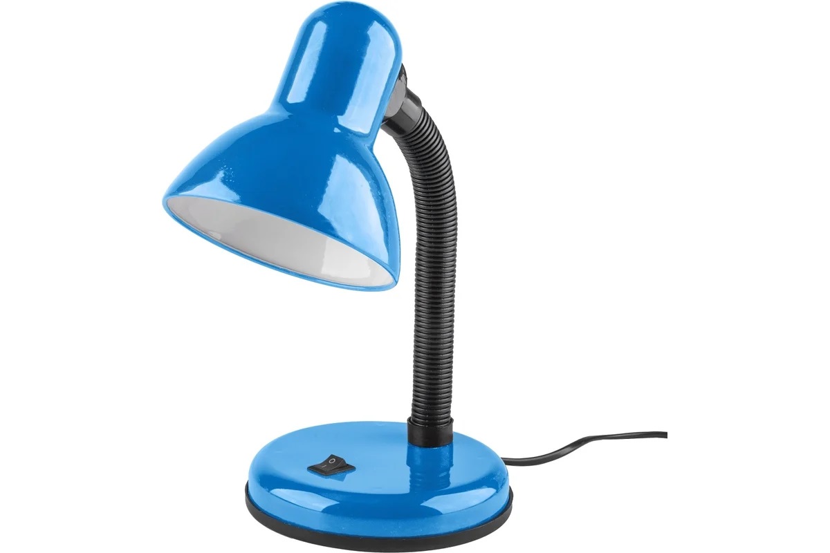Настольный светильник Включай на основание DL-1- 60W-E27, синий 1183163 - удобный помощник в работе и учебе. Основное преимущество - надежность, привлекательный внешний вид, отличная функциональность, а также классические расцветки. Основное предназначение - использование с лампой накаливания или со светодиодной лампой формы ЛОН. Диапазон рабочих температур от -20 до +40 С.